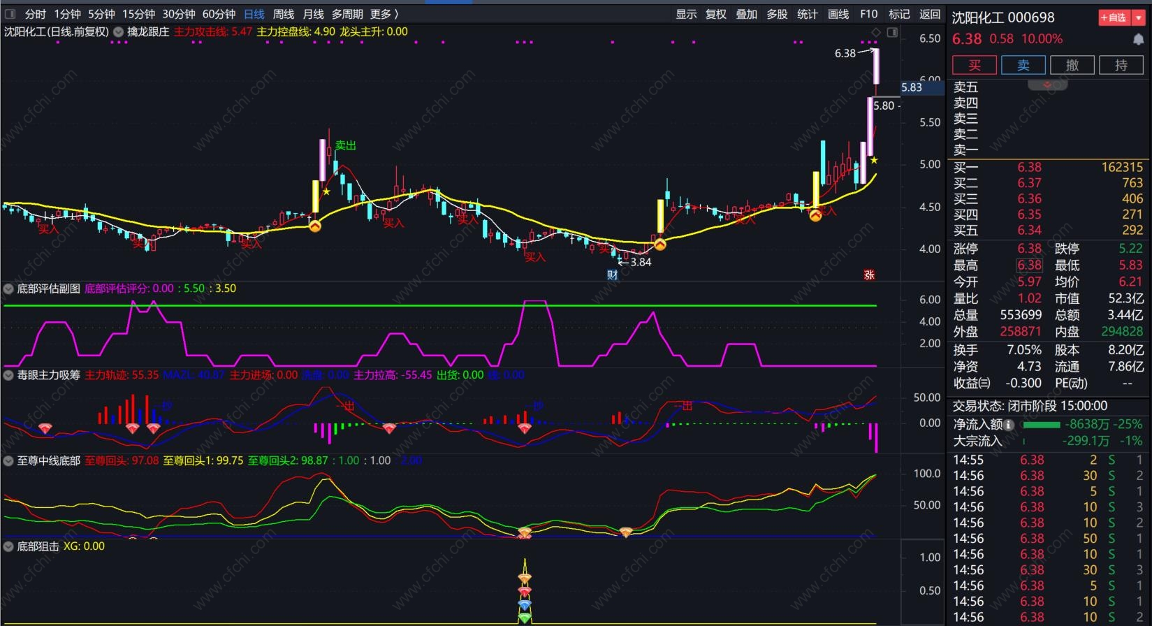 另送擒龙跟庄主图,有买点有卖点,有黄金眼启动信号,有红柱五星主升信号,可以很好地辅助操盘。