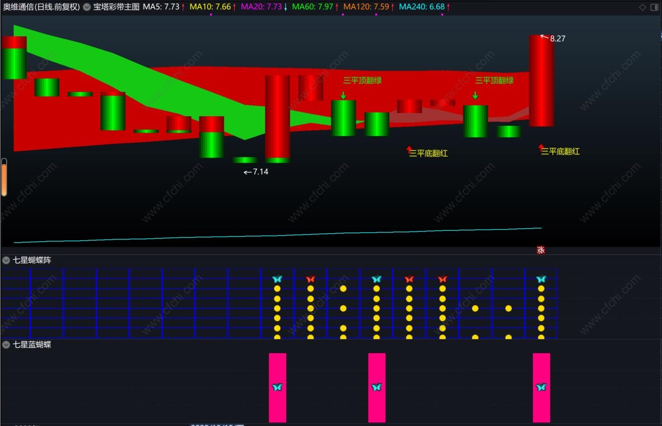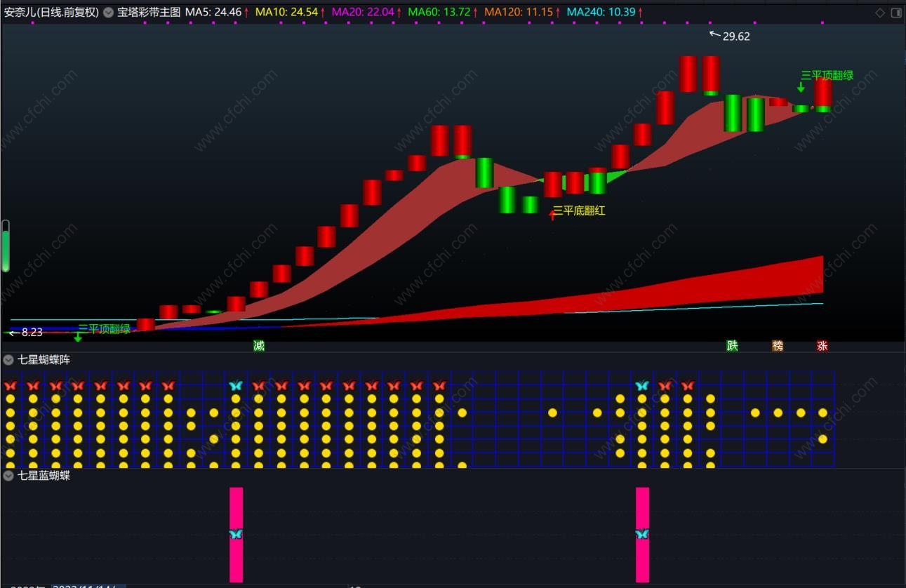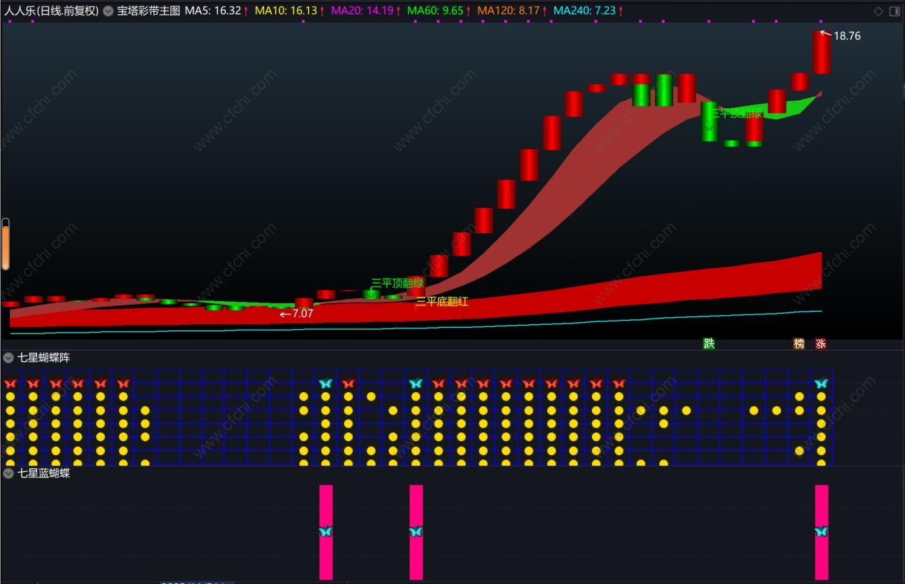 (【七星蝴蝶阵】组合之七星蝴蝶阵副图+宝塔彩带主图+七星蓝蝴蝶副图/选股,股友想要的指标)