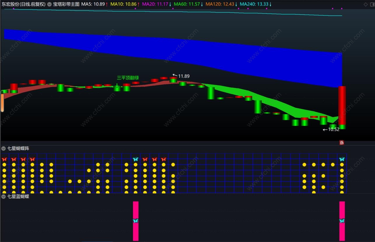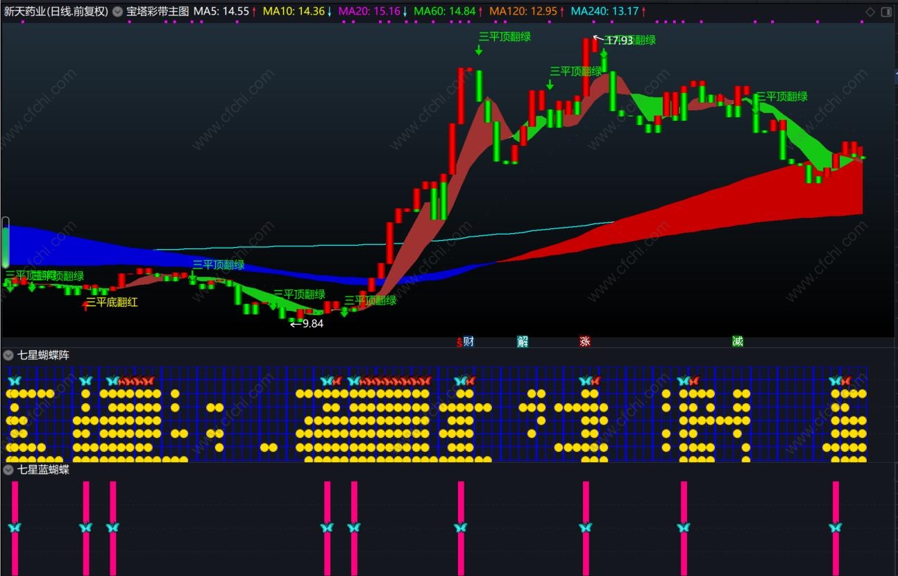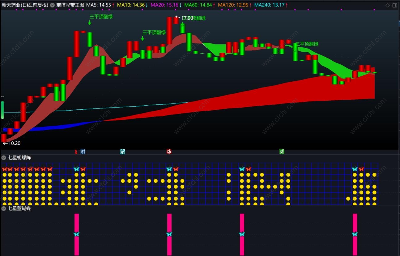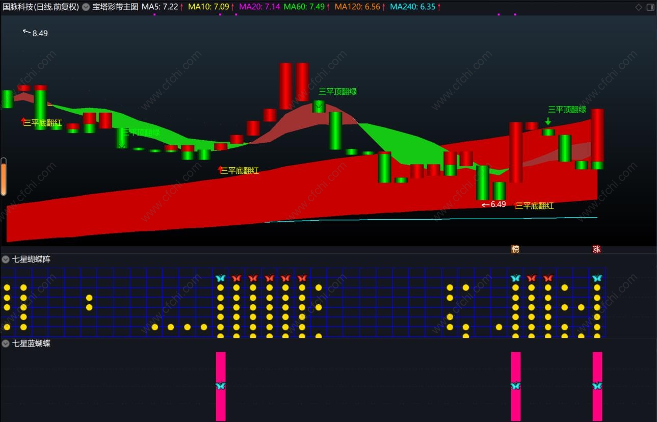 (【七星蝴蝶阵】组合之七星蝴蝶阵副图+宝塔彩带主图+七星蓝蝴蝶副图/选股,股友想要的指标)