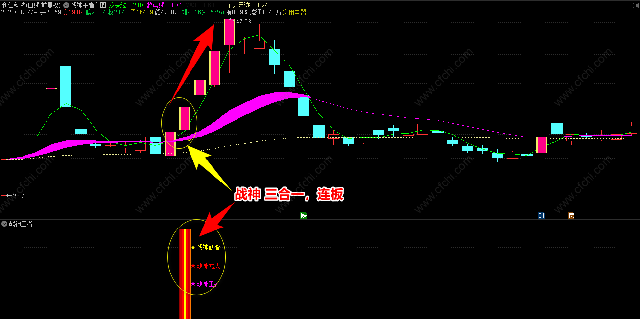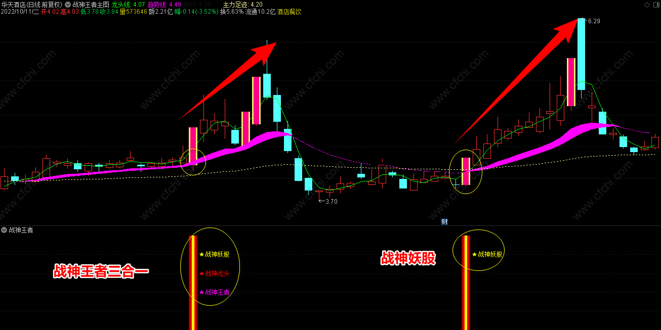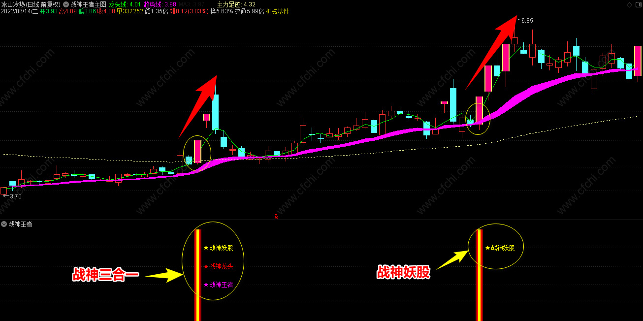 战神王者套装指标包含战神妖股、龙头、王者选股,三合一为共振最强信号,三合一选股出票较少。