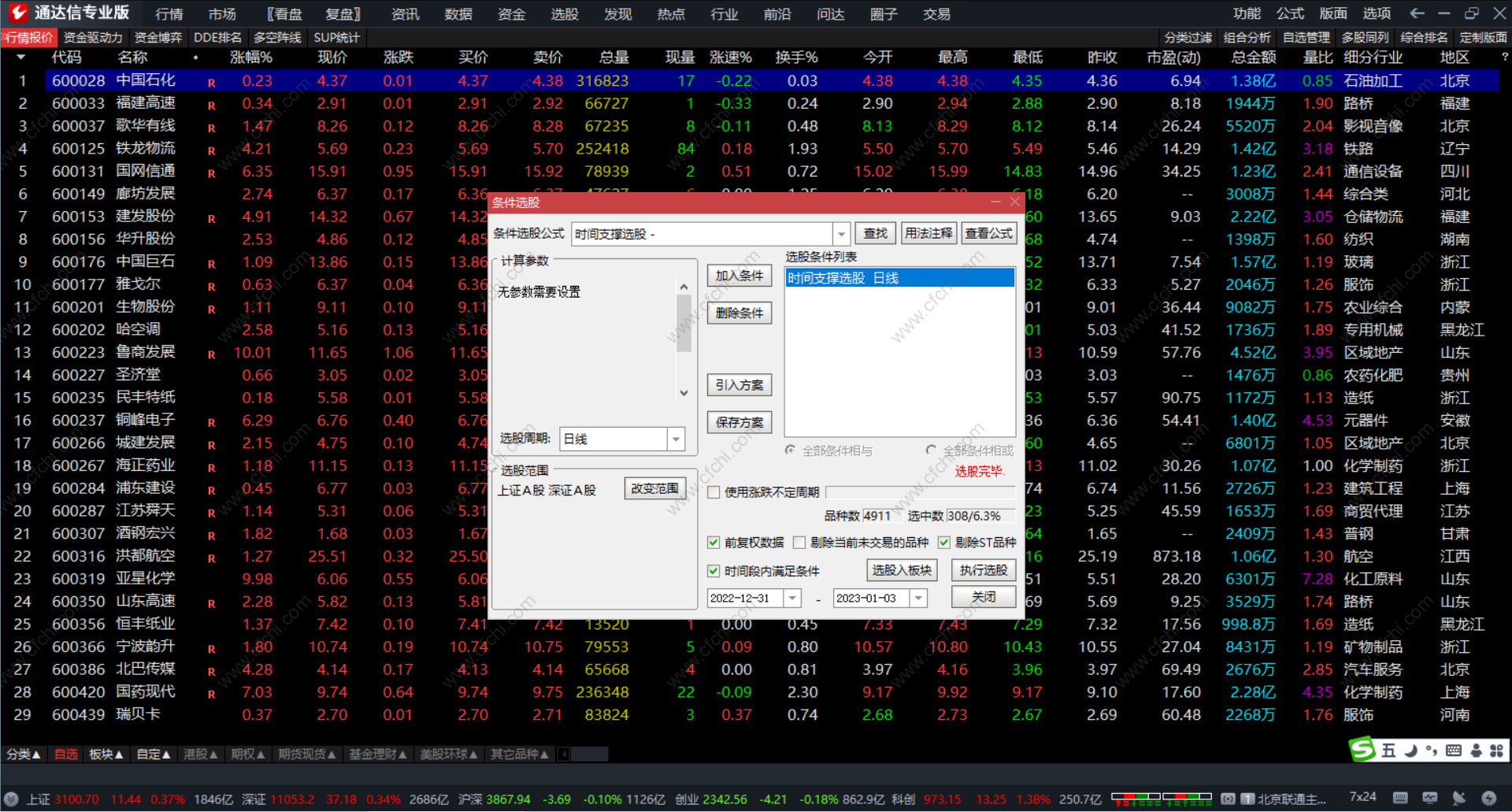 (时间支撑线主图选股公式 通达信选强势股指标选股源码 无未来)