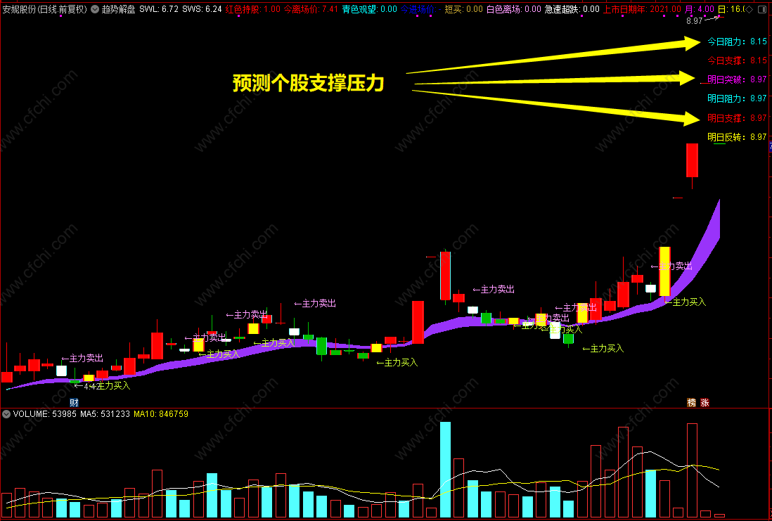 (通达信趋势解盘主图指标,盘中可做买卖参考源码分享)