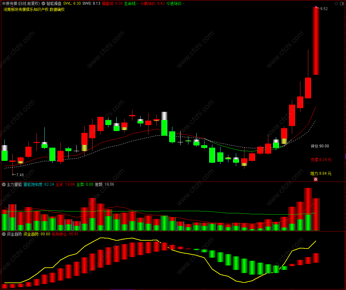 (通达信智能操盘主图+主力量能副图+资金趋势副图指标,源码分享)