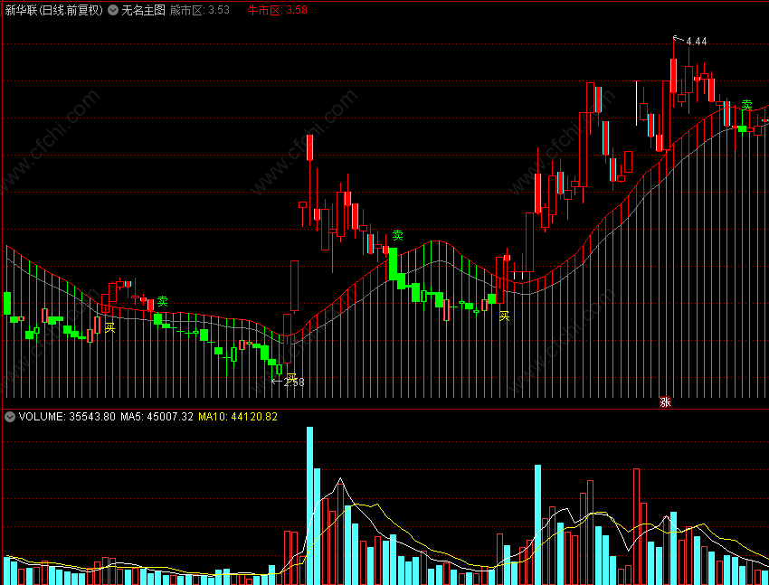 牛市区:IF(X_60*X_63 AND X_23 AND X_53 AND X_63 AND X_30*X_46 AND X_56 AND X_38 AND X_59*X_29,X_59*MA((X_48+2*X_14)/3,X_15)*X_29,0),COLORRED;