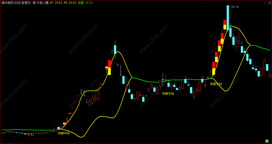 (通达信【牛股入圈】主图指标,黄线开口主升浪即将拉开,源码分享!)