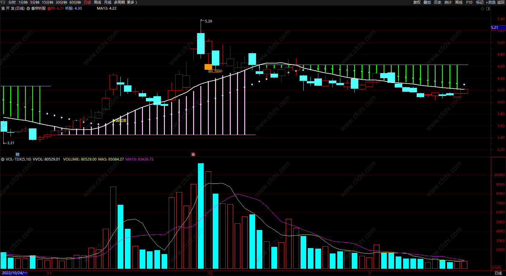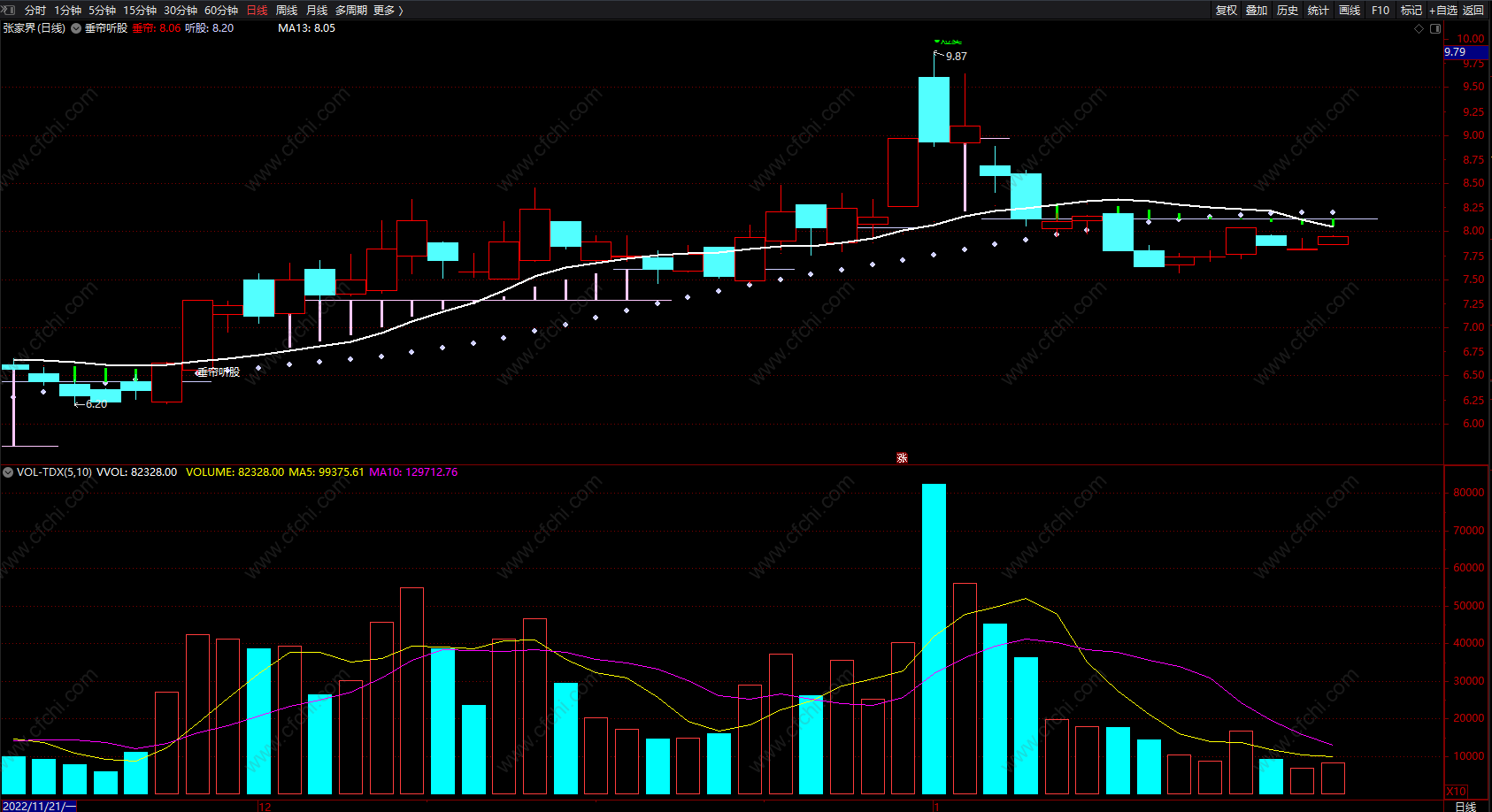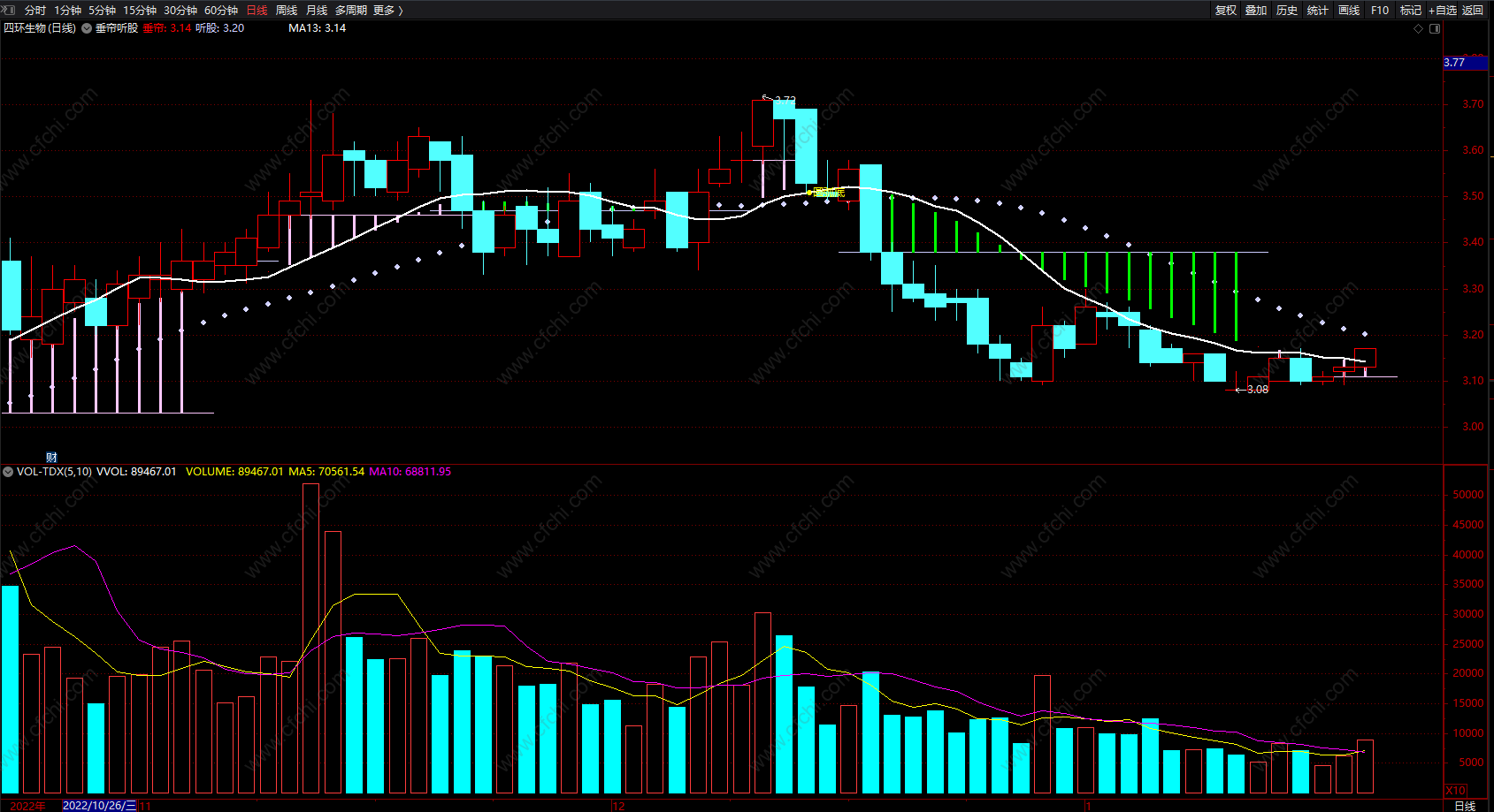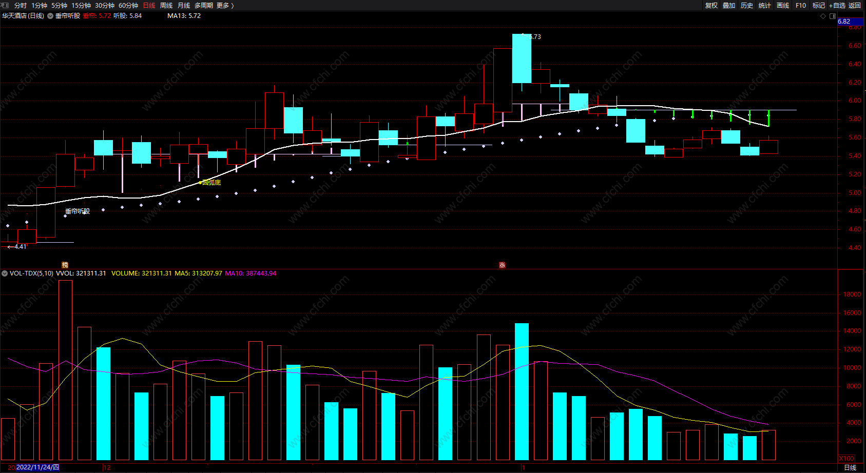听股:MA(垂帘,13),COLORFFCCCC,CIRCLEDOT;