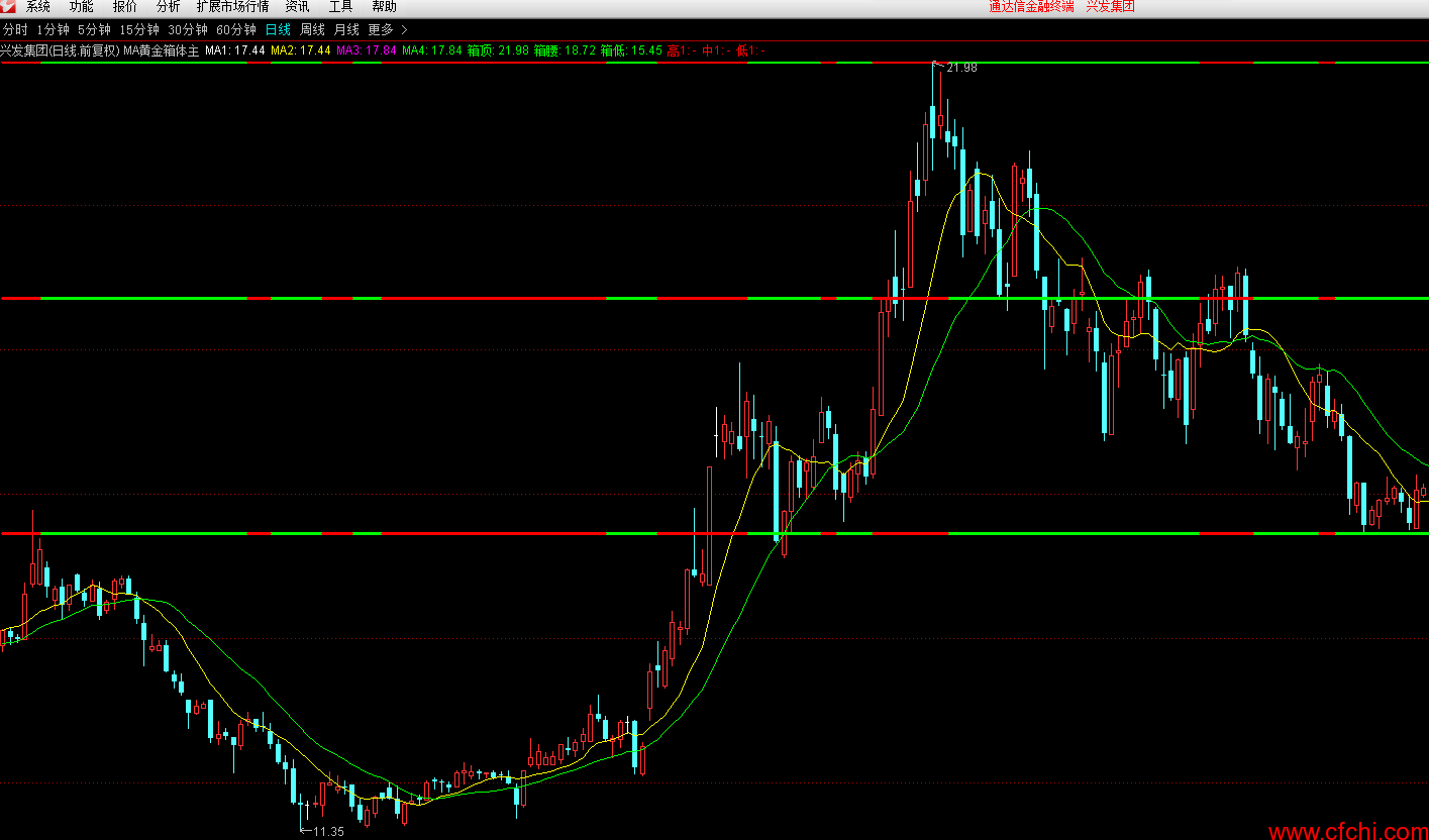 (通达信MA黄金箱体主图指标公式)