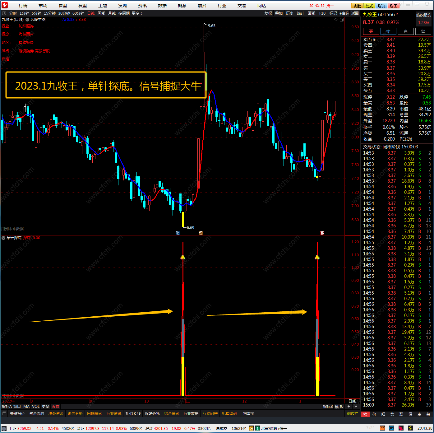 (2023镰刀 【单针 探底】三合一。捕捉阶段底,吃下主升浪!主力,资金,筹码,涨停板)
