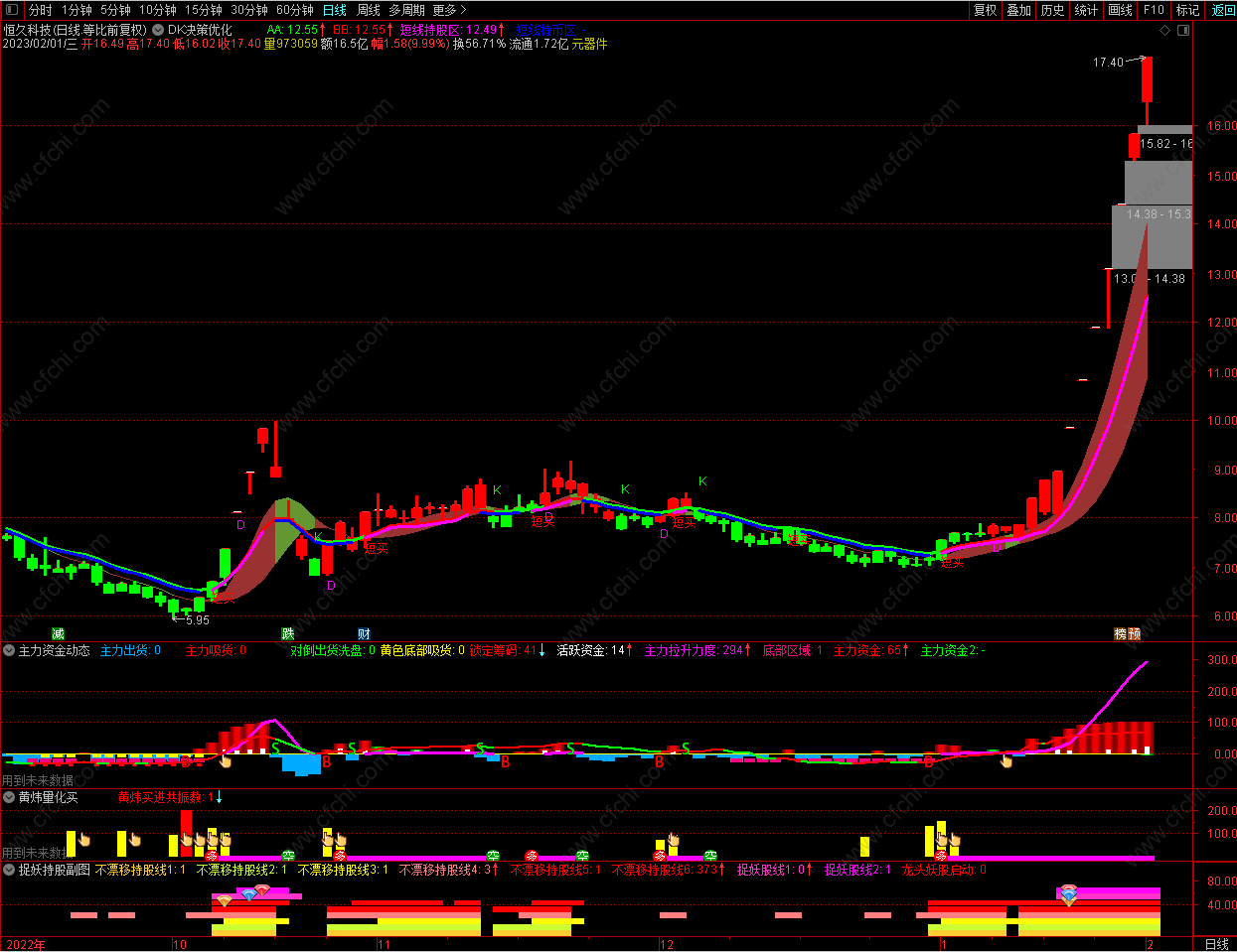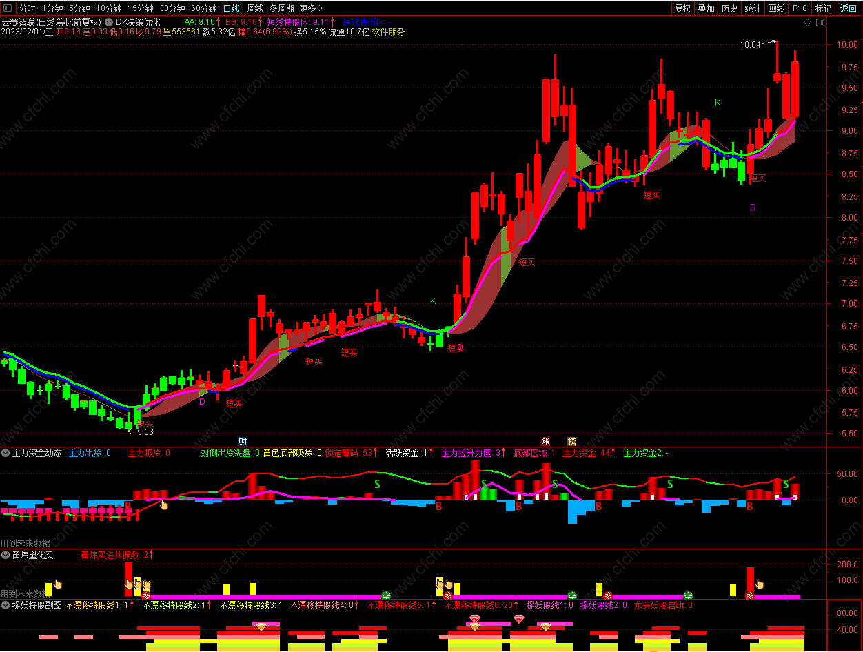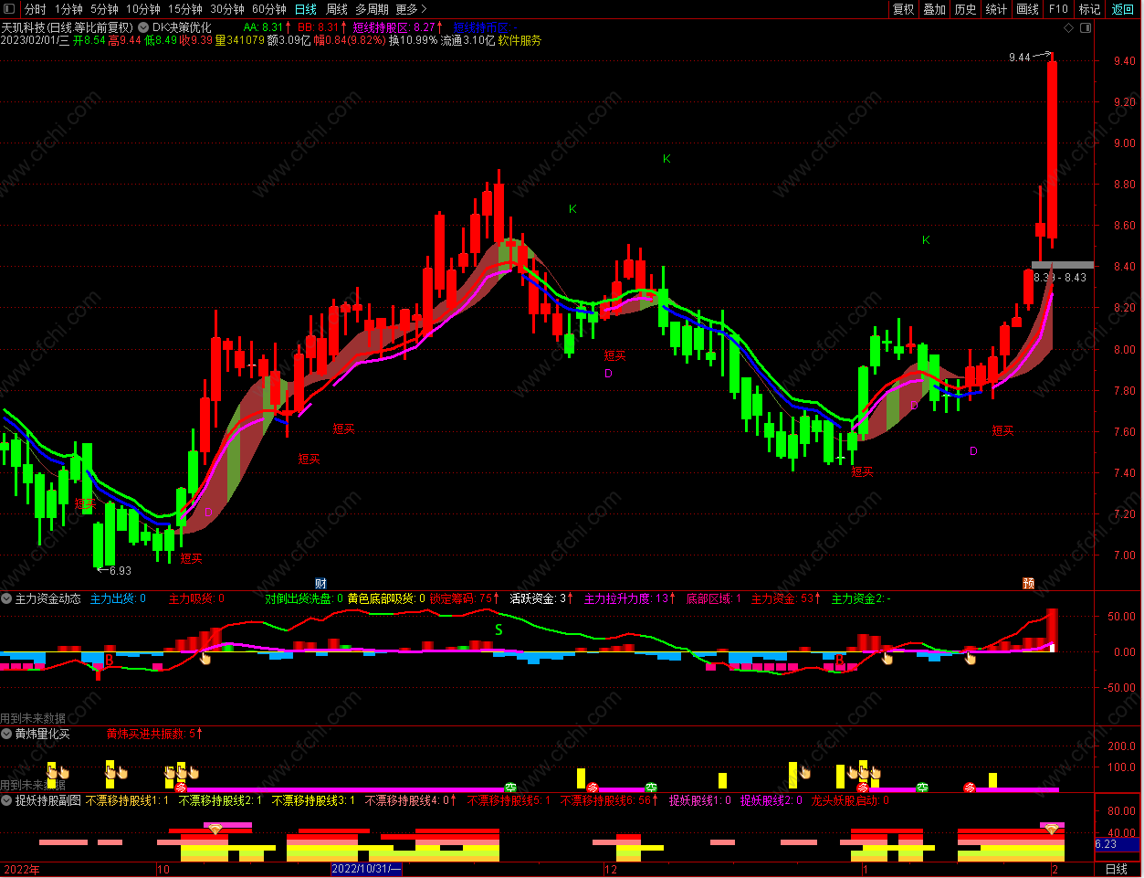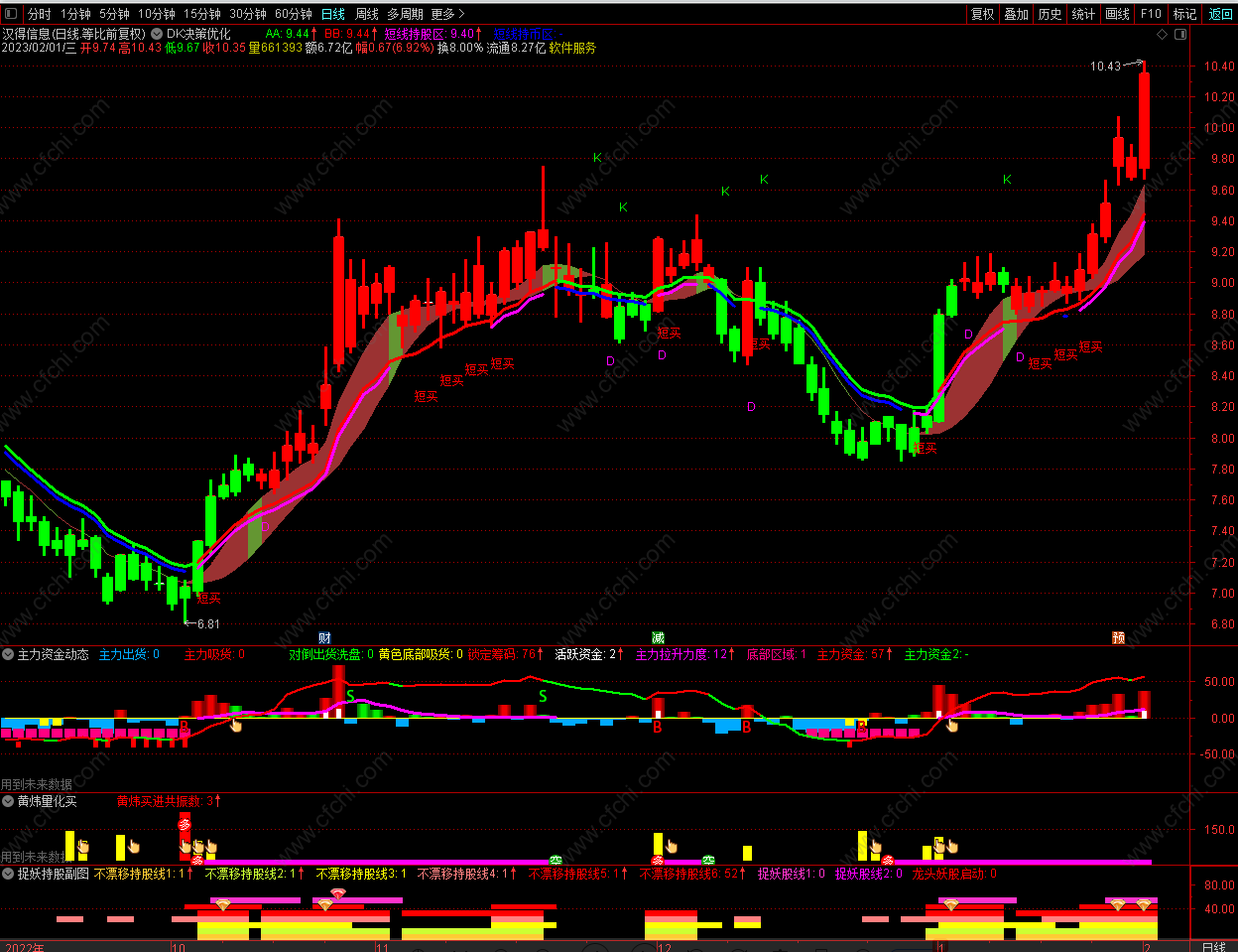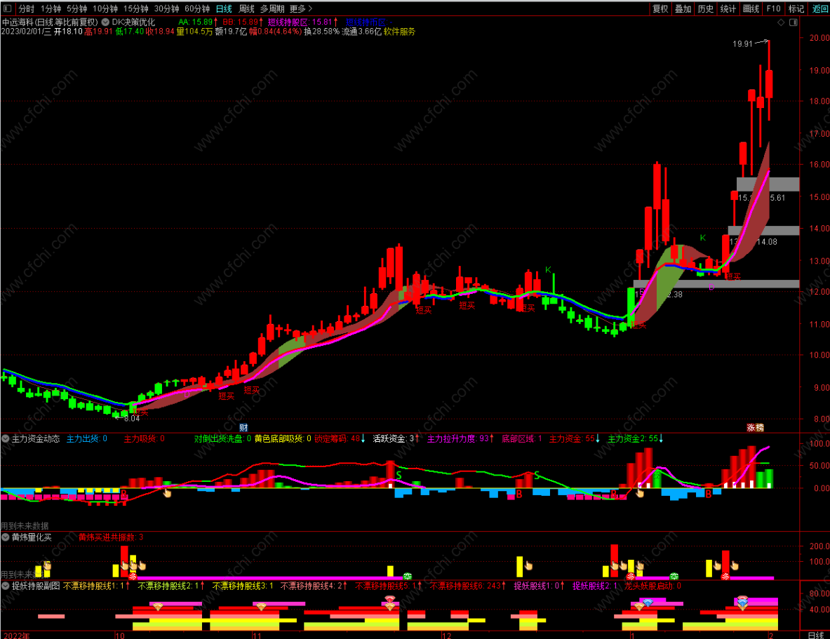 (DK决策优化主图+2个选股指标公式。仿东方财富DK决策主图并优化,无未来函数,不漂移。适合上班簇使用)