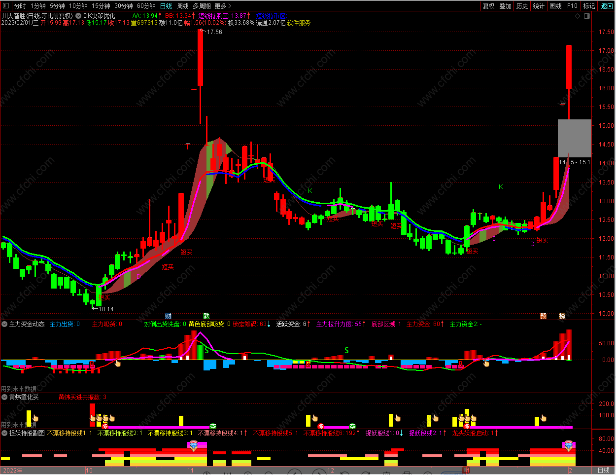 通达信〖AI量化分时〗主副图分时指标,捕捉股票在分时图上的强势启动信号,源码