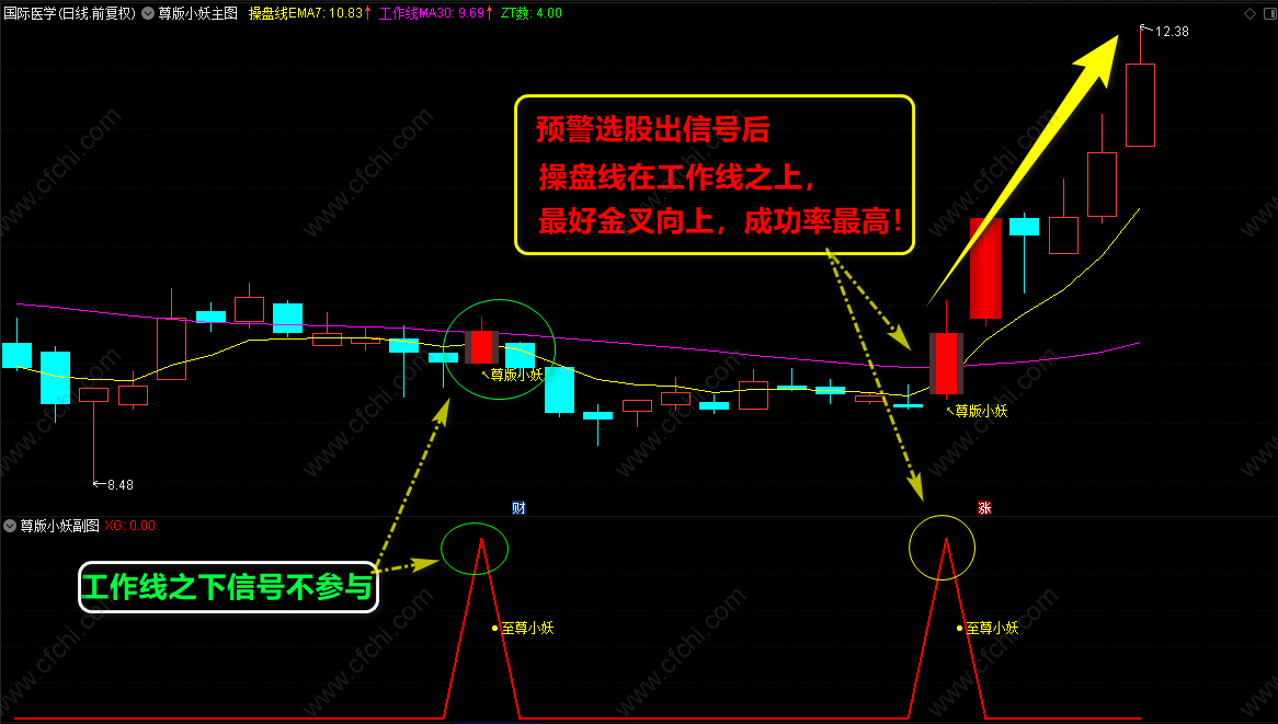(通达信超牛尊版小妖主副图预警选股指标套装,买在波段起爆点!源码分享)