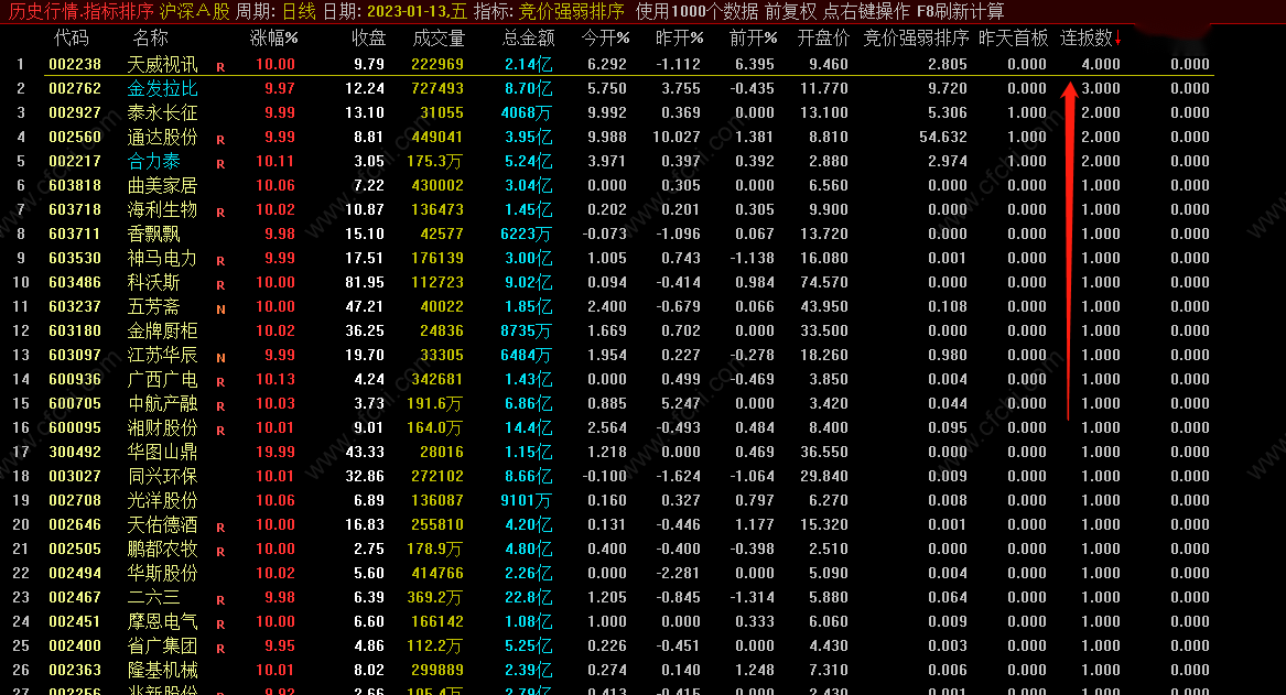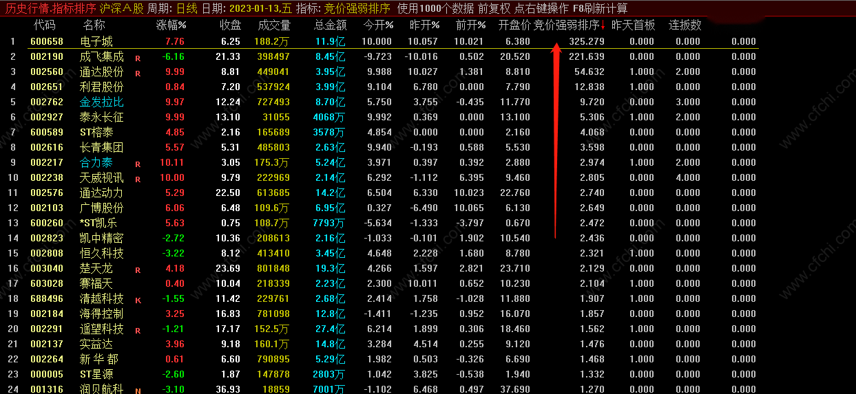 竞价结束后可以点击.401进行A股排序,这里给出多种做一进二模式的方法。