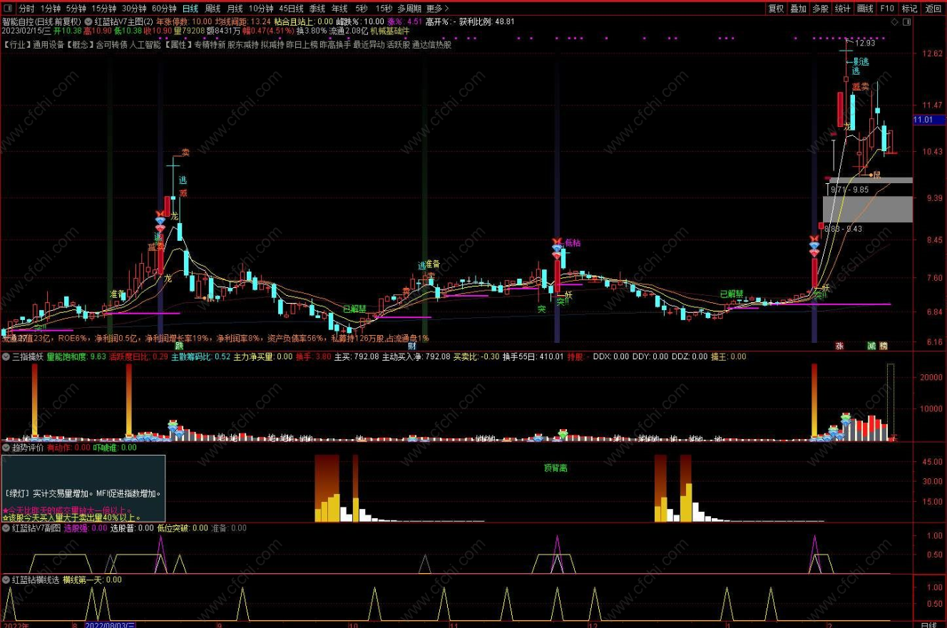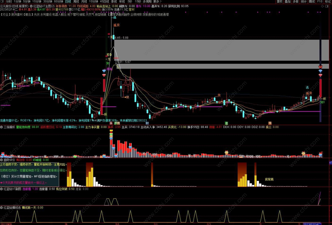 上下两行会变色的基本面信息、上影线开溜的K线高度标注,精准的T+0技术,跟大红牛一样的品红横线推土机,涨停K线标注,还有现在更新的抓牛股功能