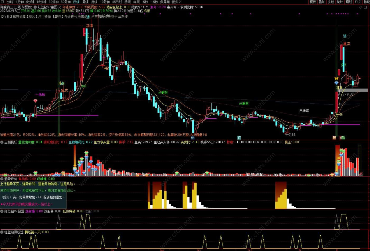 指标含有CAPITAL流通股本,DYNAINFO及时行情,WINNER获利盘比例,CURRBARSCOUNT到最后交易的周期,等函数,介意的请勿下载!