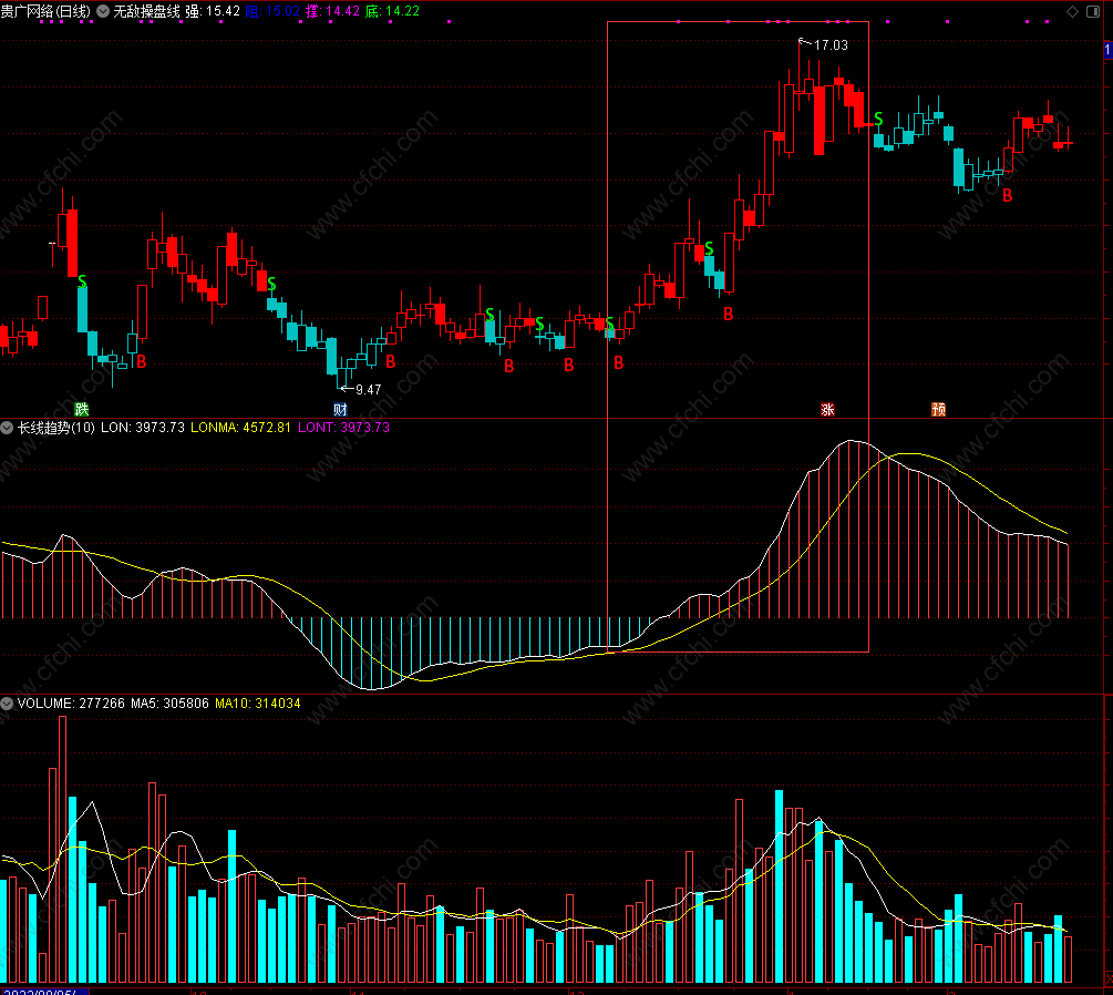 2、指标特点在于:长线副图指标判断当前个股处于位置,是否能够看长做短。