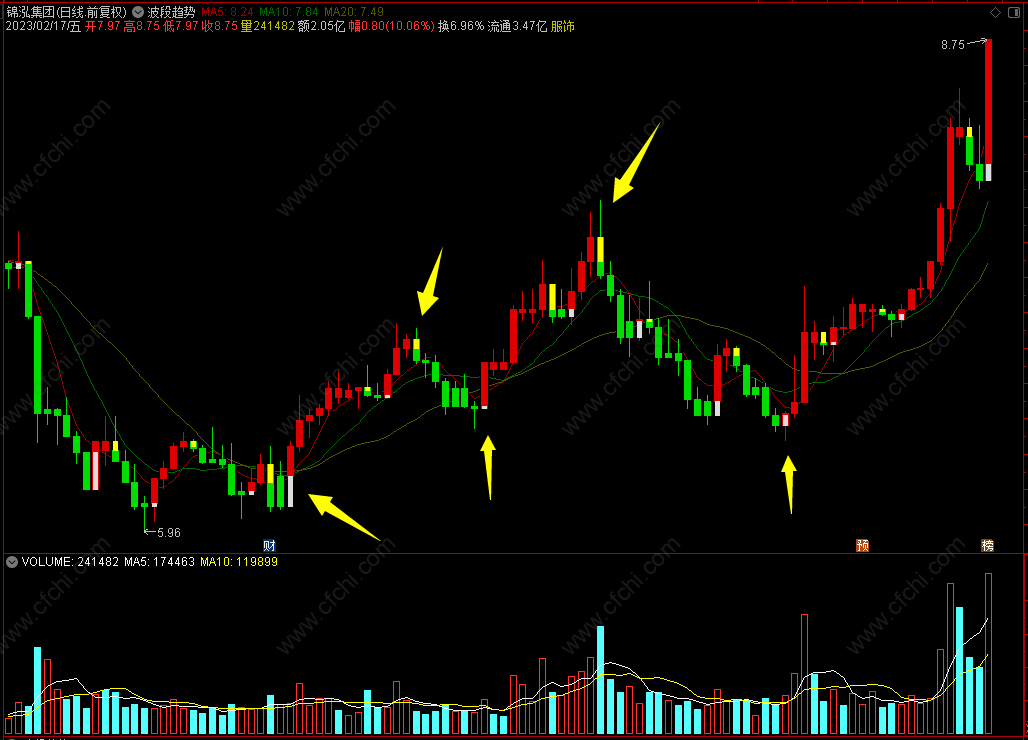 (通达信波段趋势主图指标,白买、黄卖、红持股,源码分享!)
