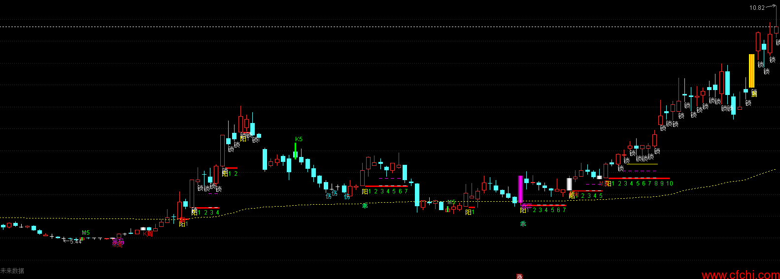 过均必牛:SUM(CLOSE*VOL,FROMOPEN)/SUM(VOL,FROMOPEN),COLORYELLOW,DOTLINE;