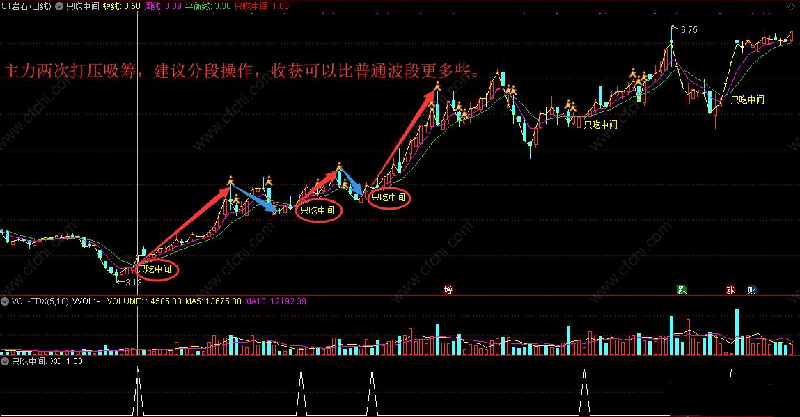 (最好的通达信波段神器《只吃中间》主图 副图 选股 )