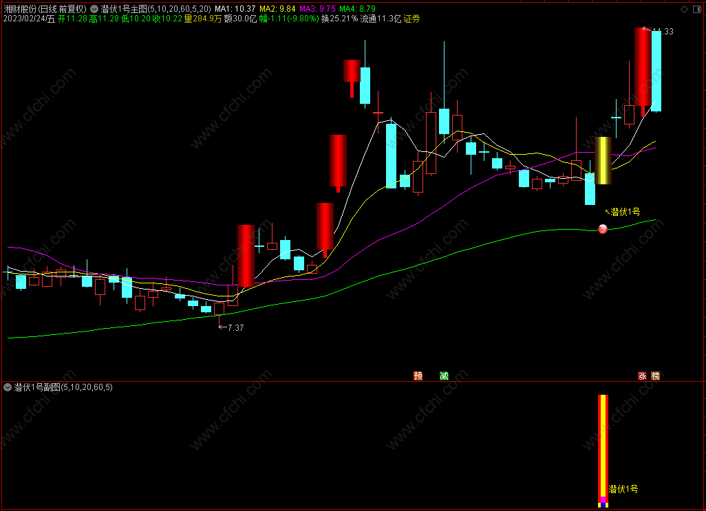 (通达信潜伏1号主副图套装指标,潜伏捉主升,成功率高,信号少,不漂移。源码分享!)