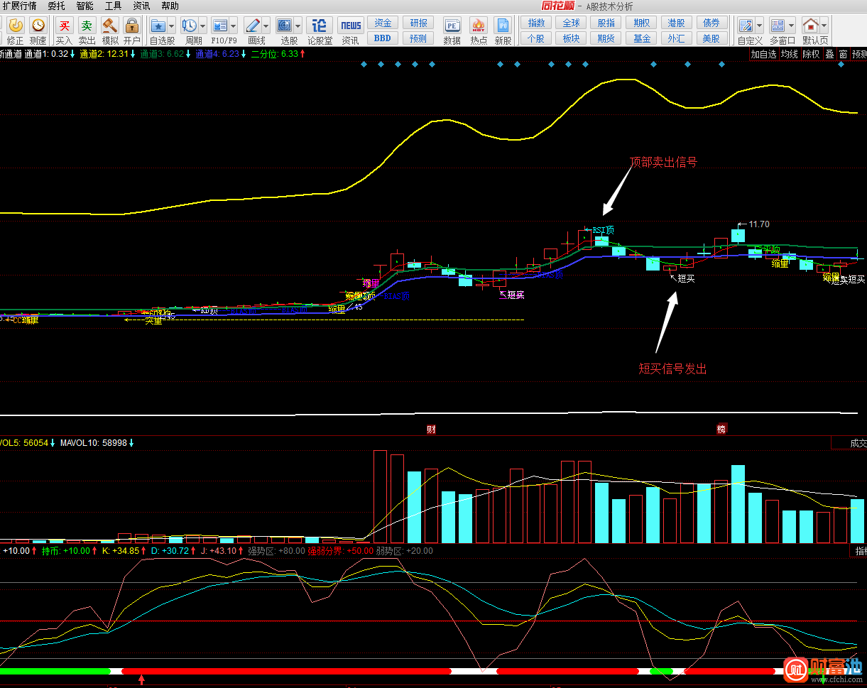 (同花顺薛斯通道及突破量系统主图指标公式)