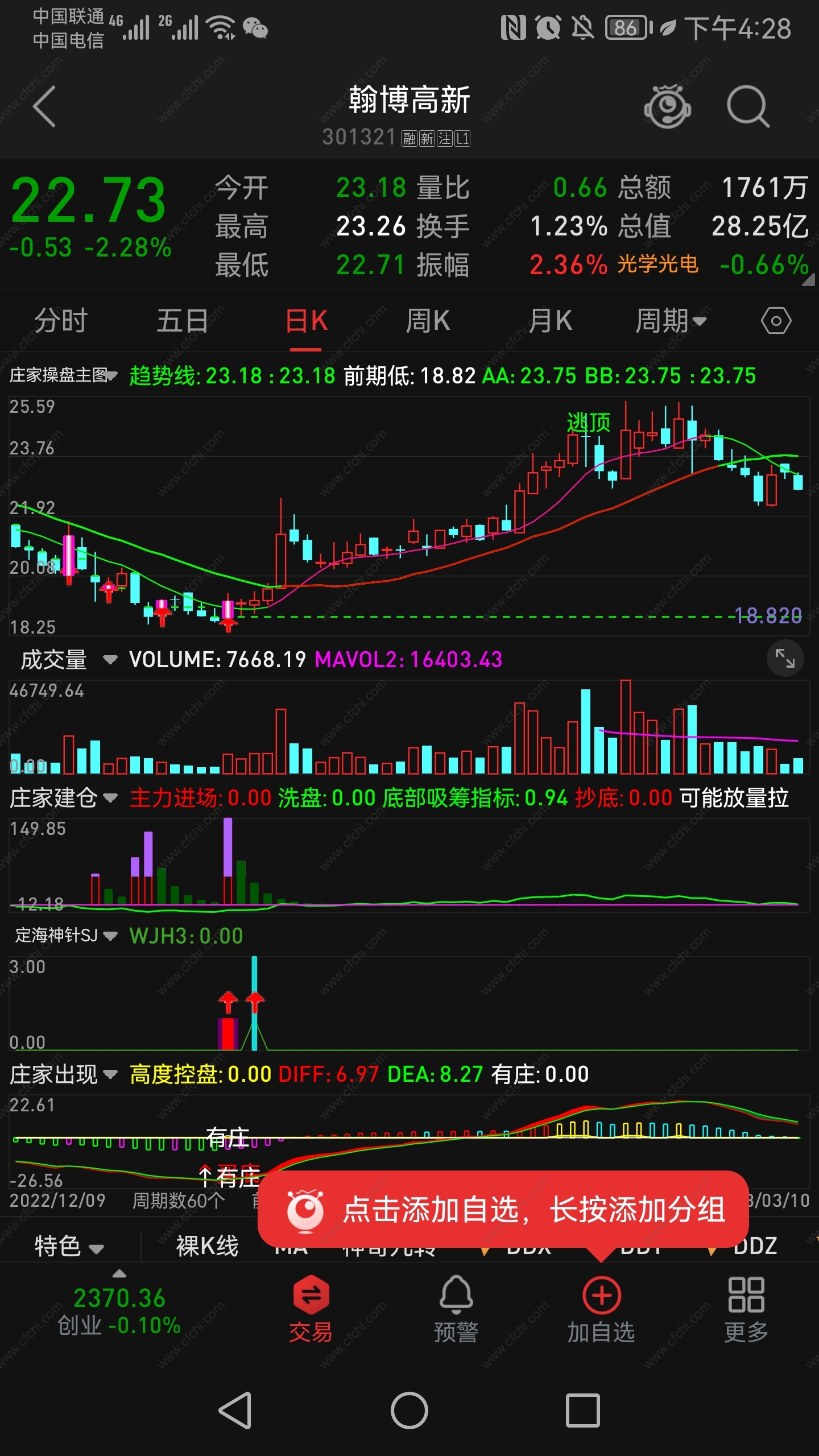 升级版增加庄家建仓和庄家建仓精选选股,附图把先于庄家和定海神针进行了合变,主图增加止损和逃顶,趋势变红持股,趋势变绿空仓,指标界面更加清晰明了,增加手机版方便外出时看盘使用。