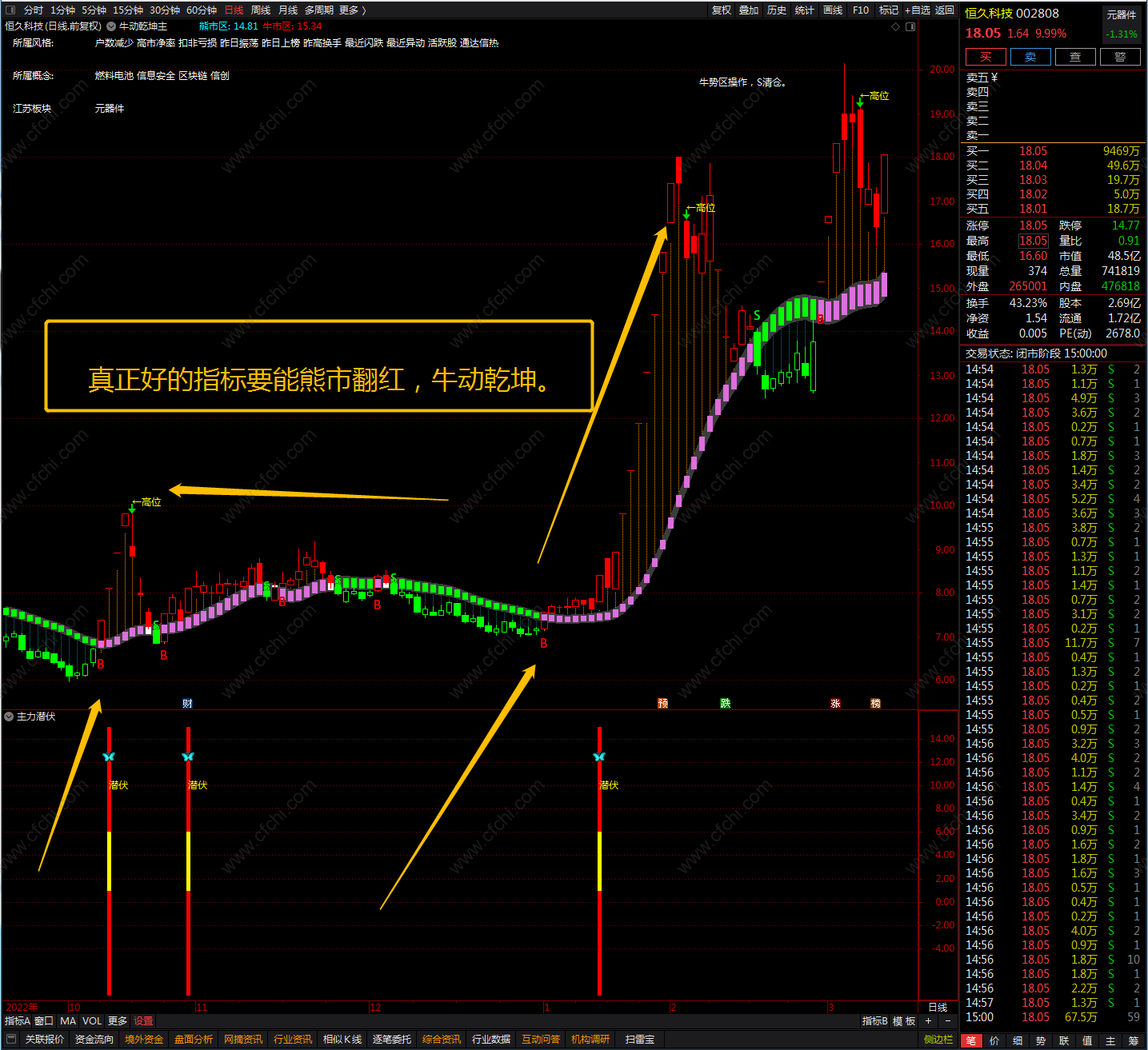 精华版:分时主力吸筹:增加了买入点提示,效果不错。手机电脑都可用。