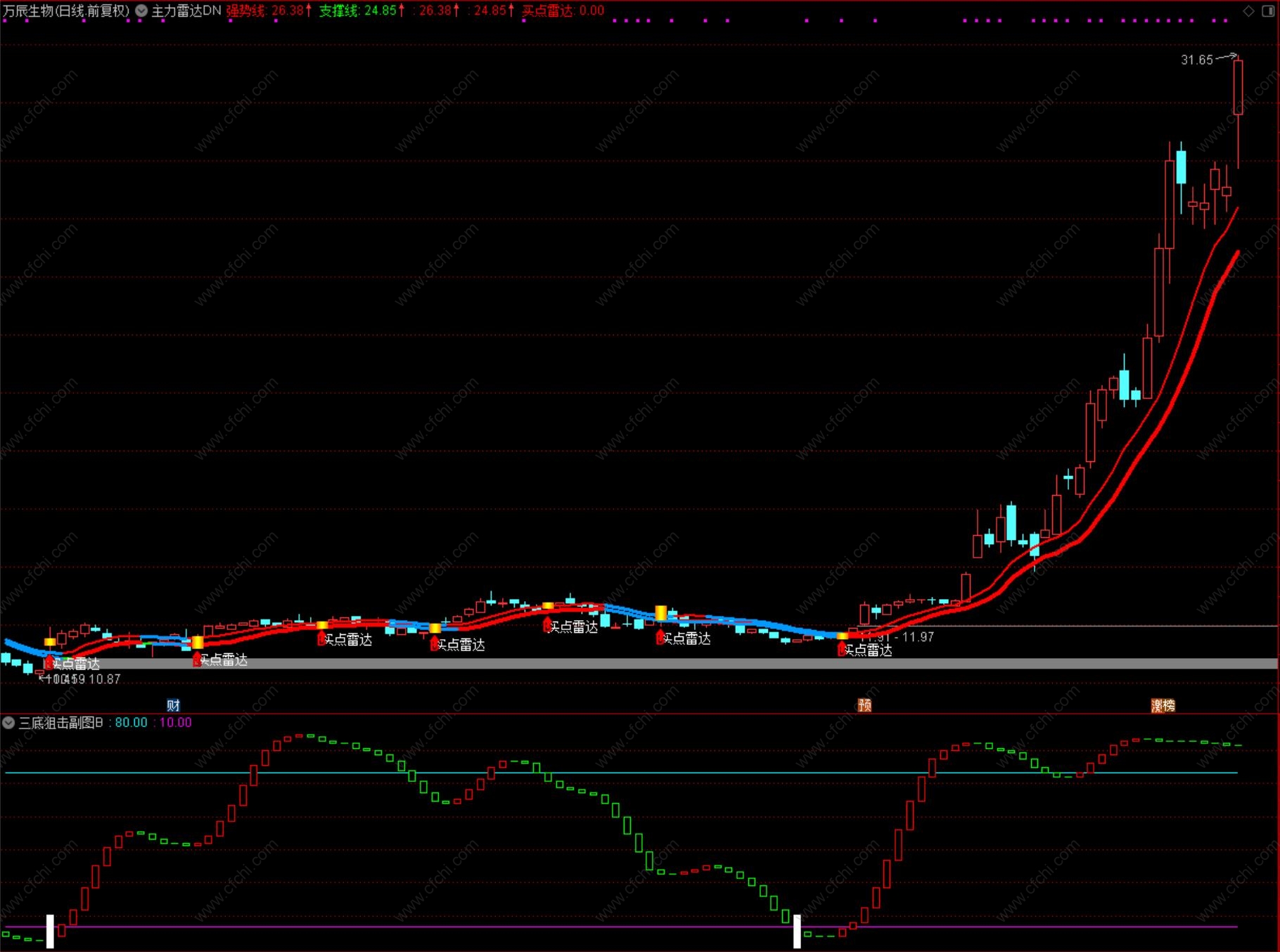 (主力雷达DN,双轨主力雷达指标主图,有买点有卖点,与某牛的几乎相同,需要的可下载)