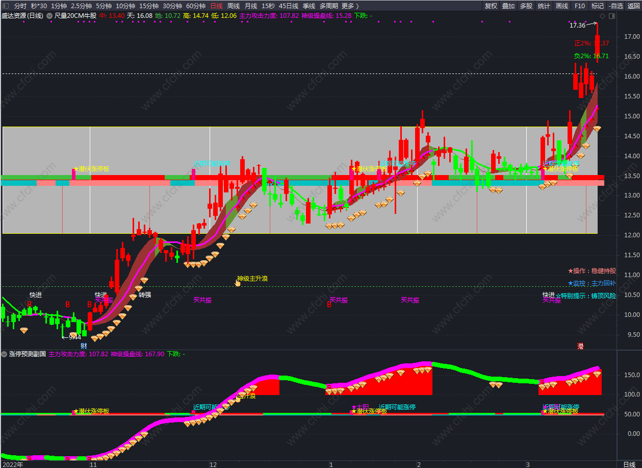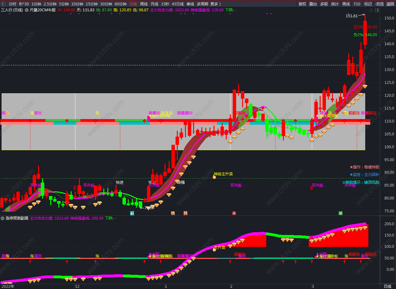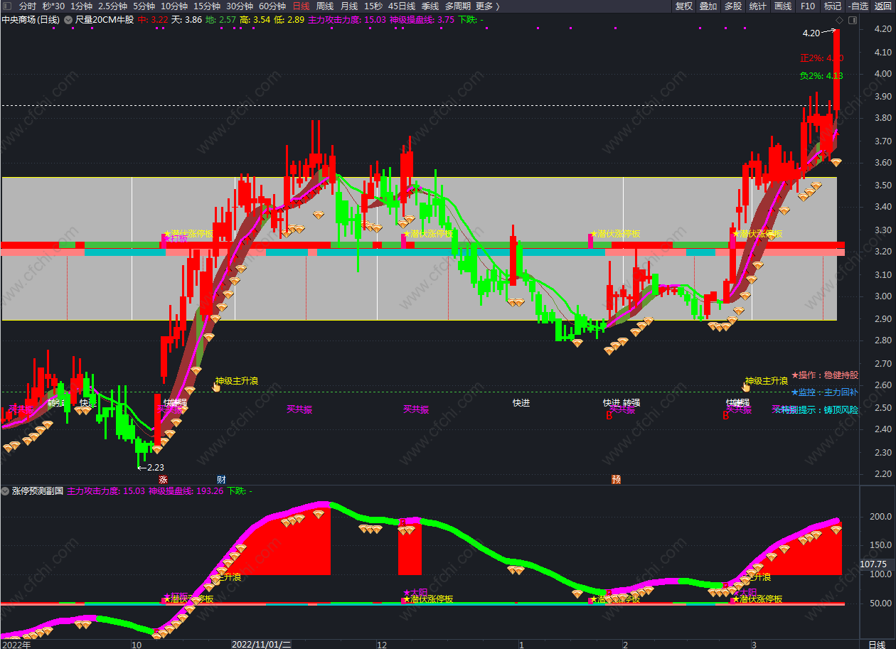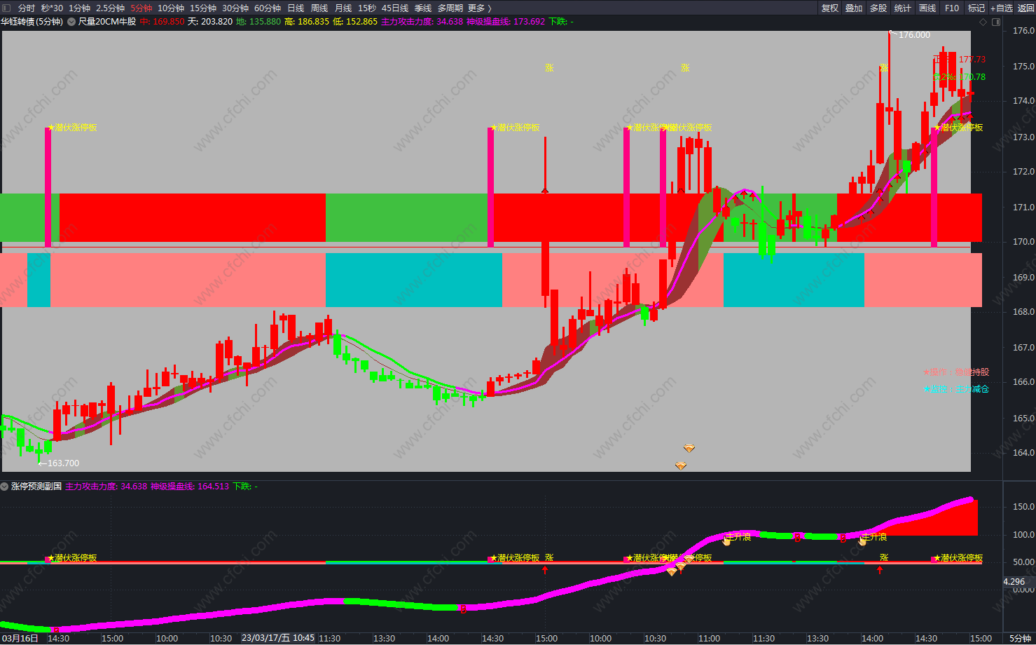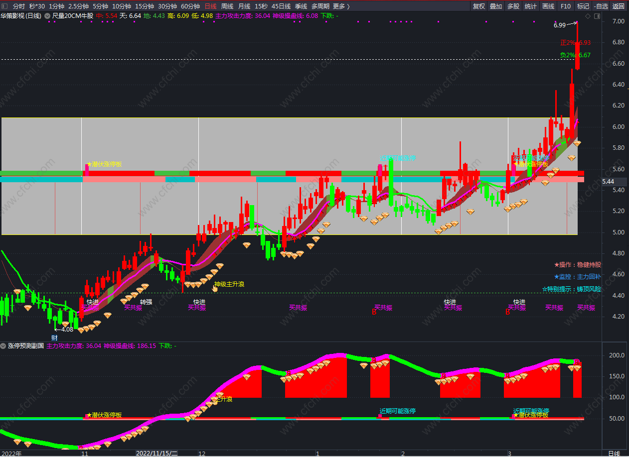 (尺量20CM牛股主图指标公式,有潜伏涨停板和操盘提示。无未来函数,不漂移。适合上班簇和散户用。)