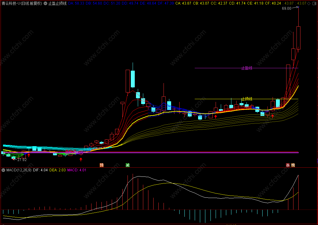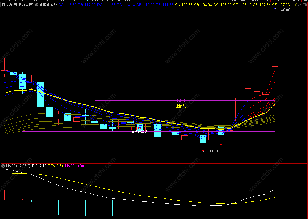 (【通达信】超牛止盈止损线主图指标,趋势进场清晰明了源码分享)