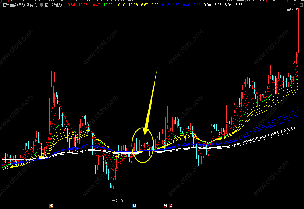 (【通达信】超牛彩虹线主图指标,彩虹线集结向上,行情开始走牛!手机电脑均可使用源码分享)