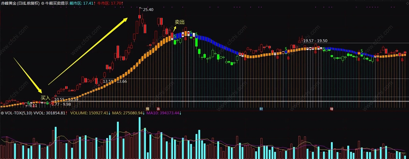 牛熊买卖主图指标,成功率高,简明直观,该公式预测股票趋势非常实用;就算是新手操作也简单,看到出现信号“B”是买入,信号“s”卖出,有一定参考价值,用法也很简单,详见贴图说明。