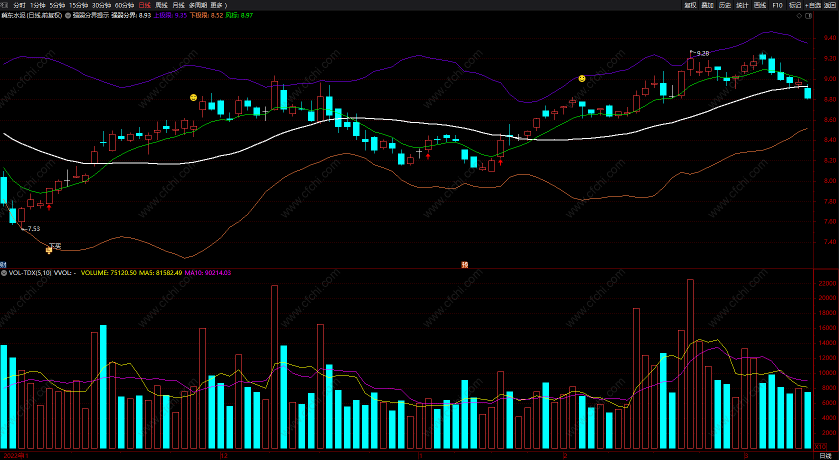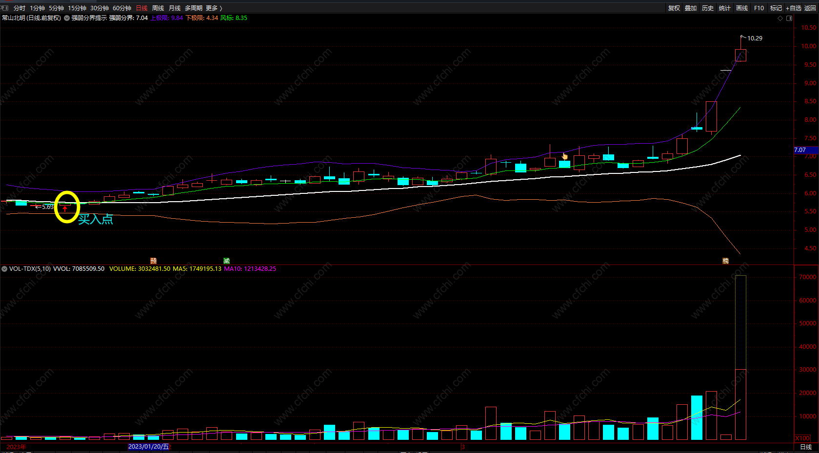 上下极限买卖主图指标 通达信强弱分界提示指标公式 无未来 源码