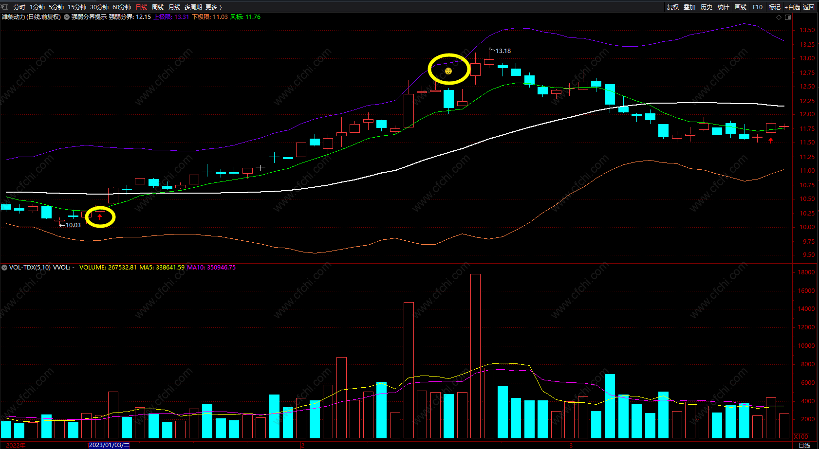 (上下极限买卖主图指标 通达信强弱分界提示指标公式 无未来 源码)