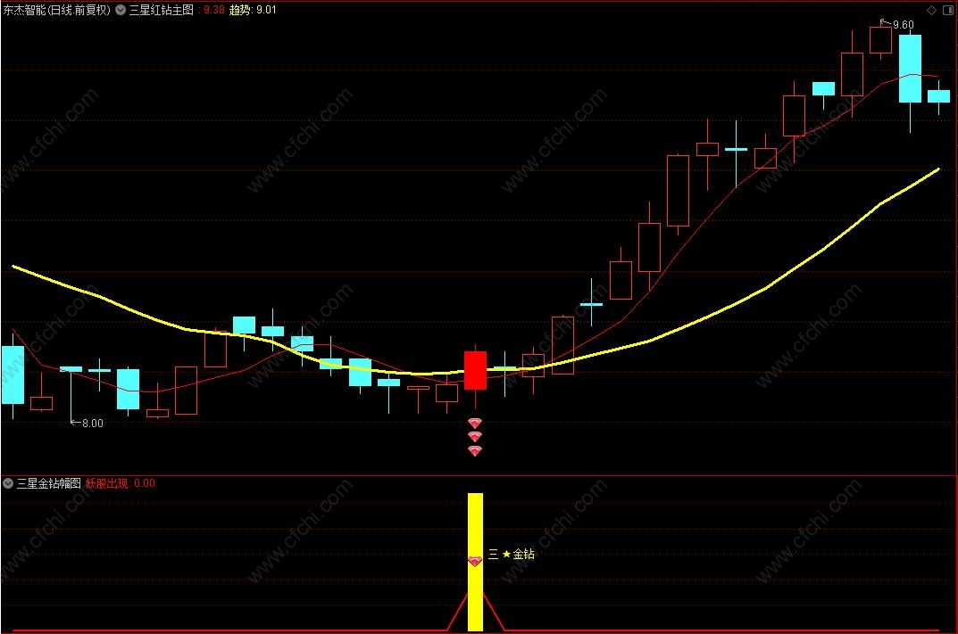 1、因该指标是结合量价分析原理设计而成,所以所选个股他必须是当天量价齐升的股票。