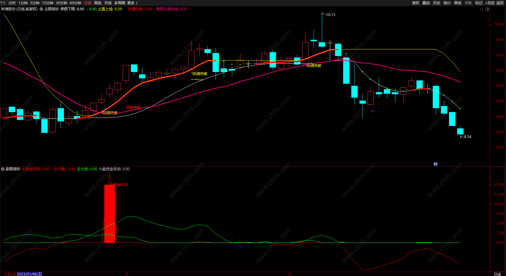 通达信真实庄家资金指标公式 资金突破提示买卖 源码 主/副图