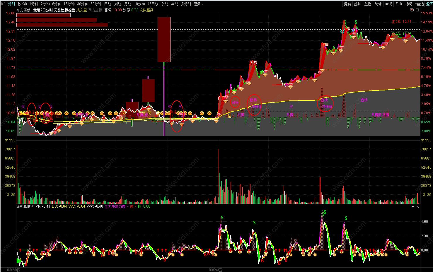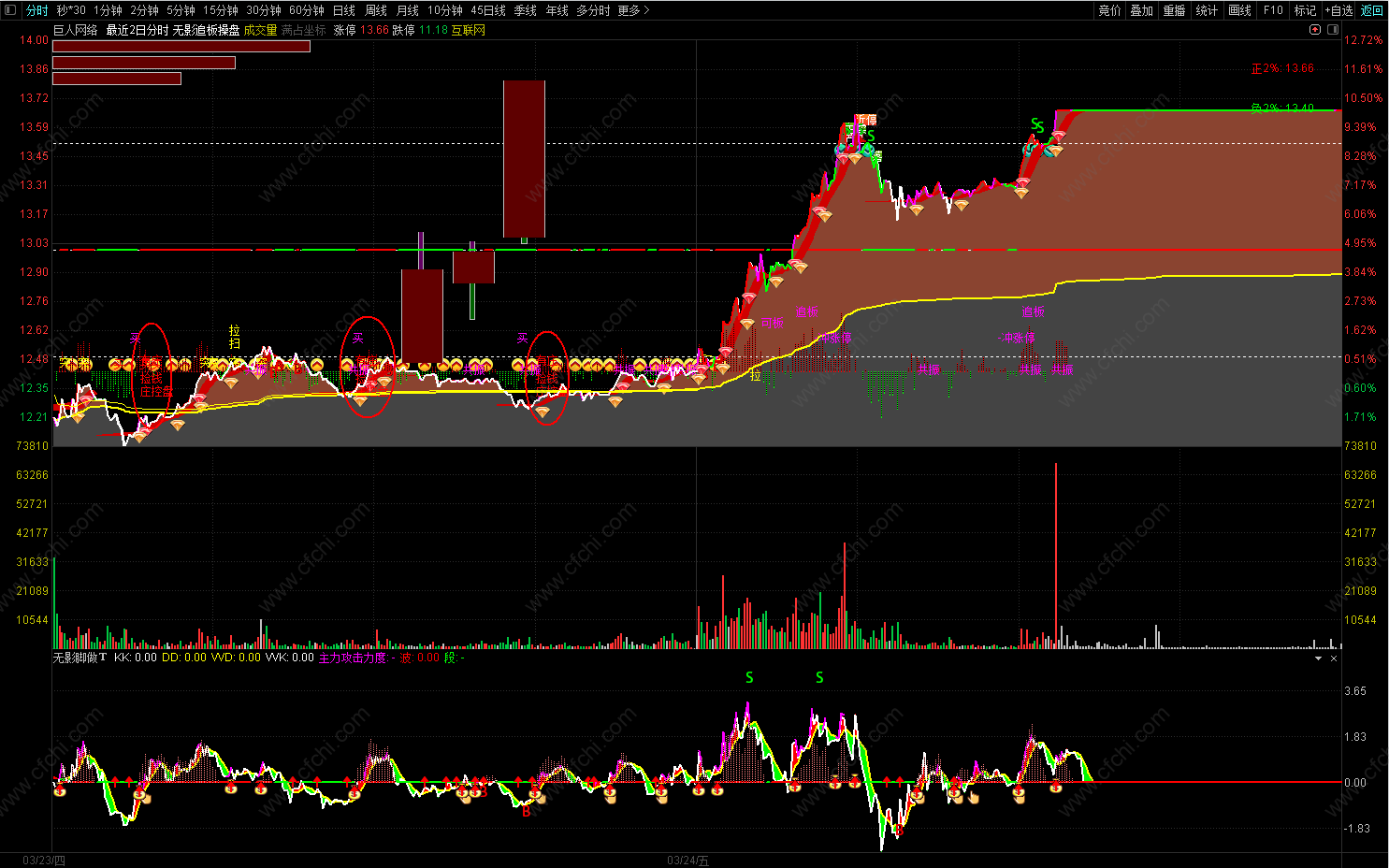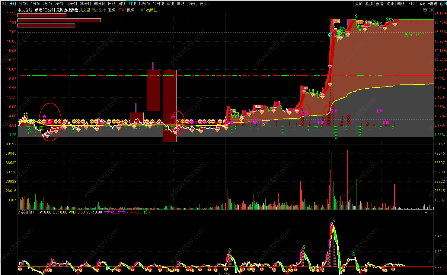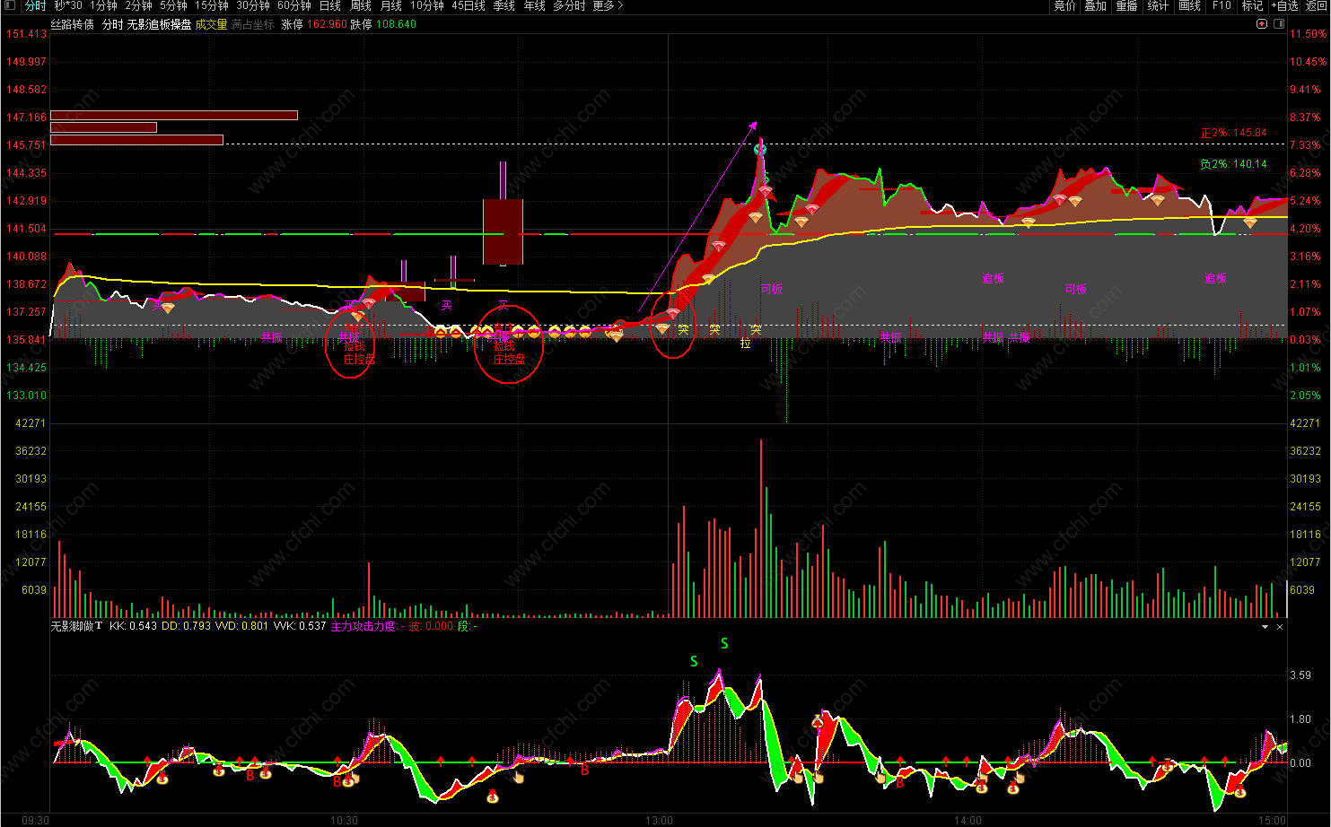 (无影追板操盘最牛分时主图试用版。T+0神器,可用于股票,可转债,期货等做T+0.无未来,不漂移.)