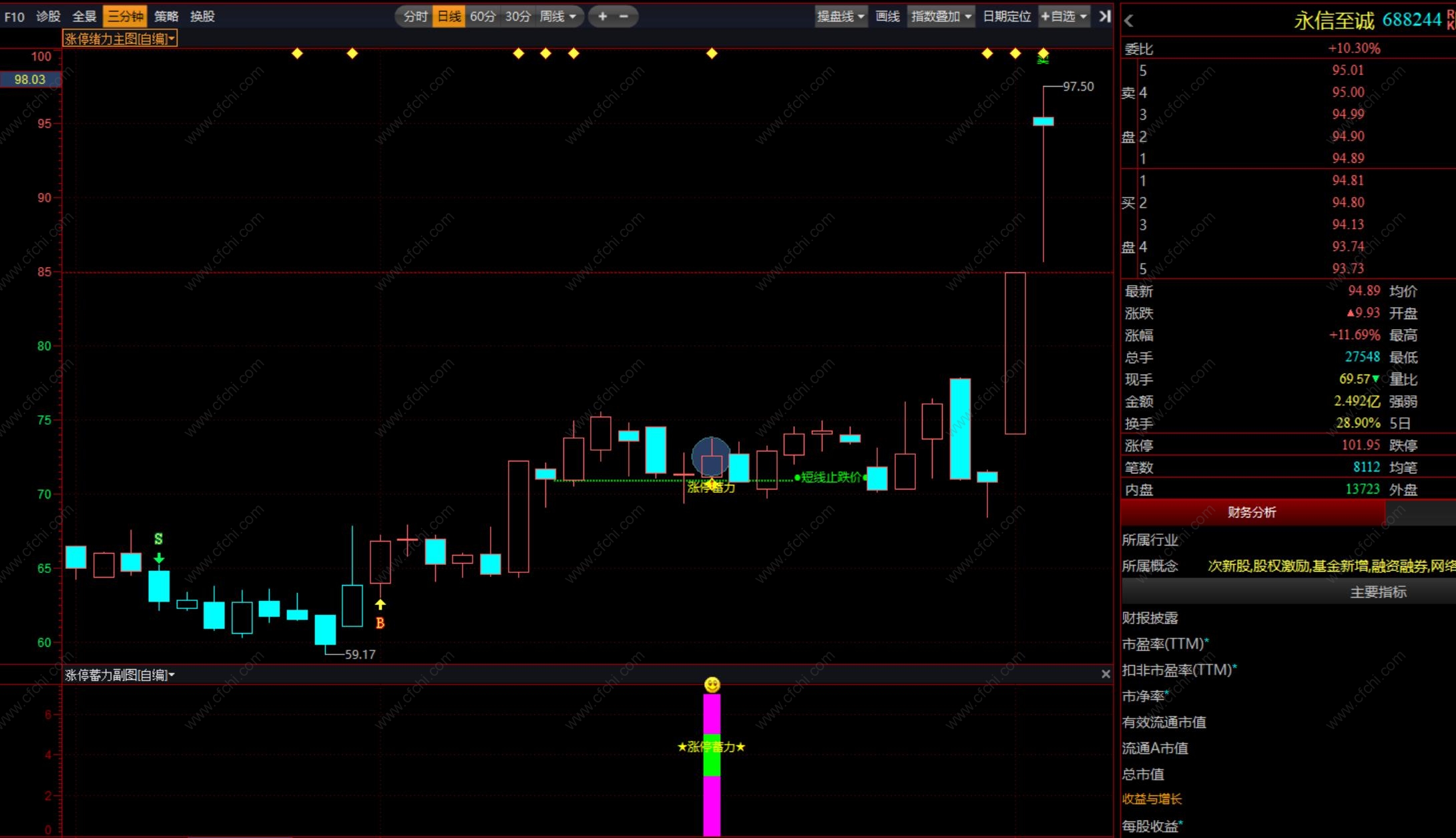 (益盟操盘手。某VIP秘钥 涨停蓄力 主图/副图/选股指标套装,实战实用给力公式)