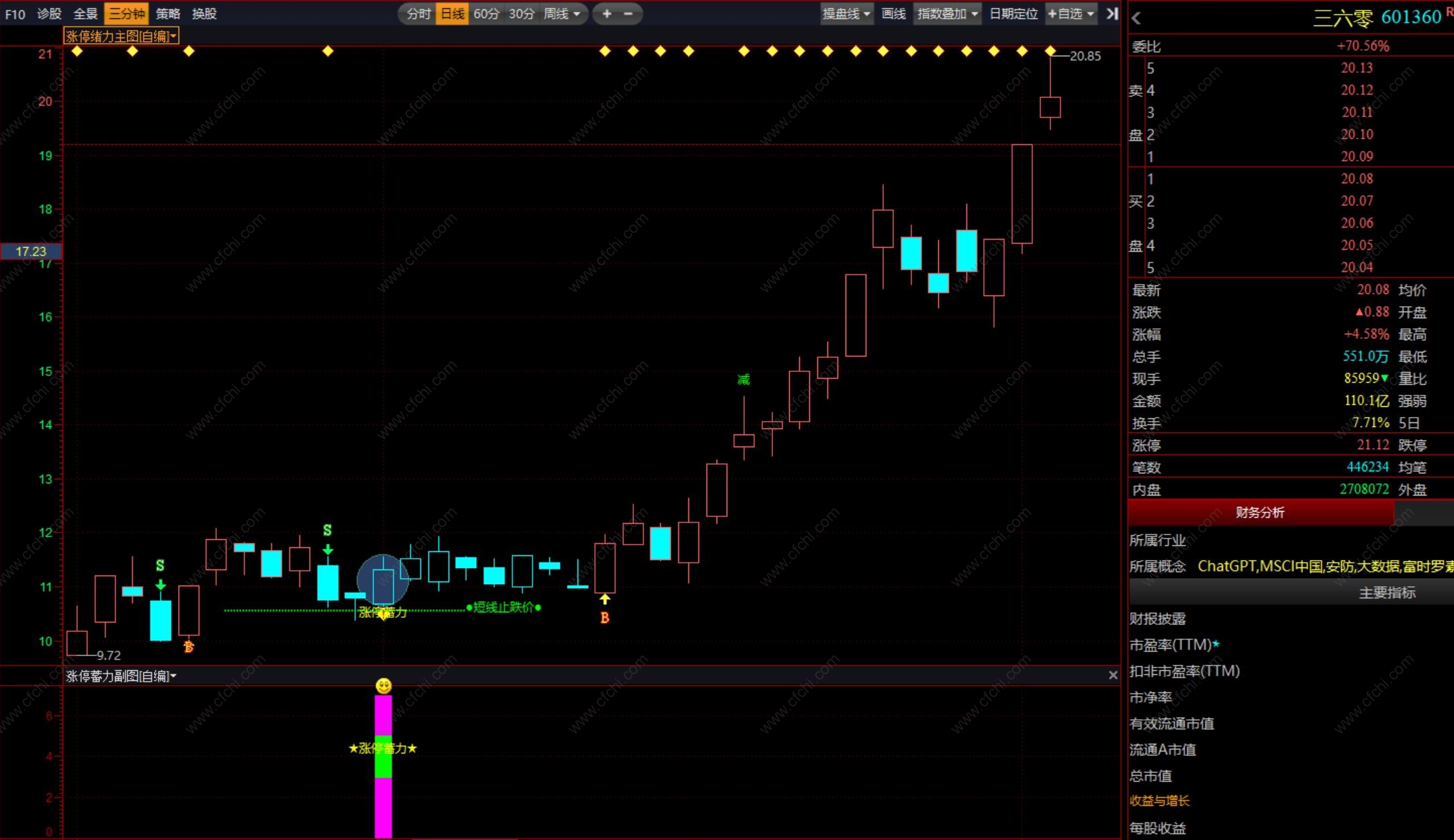 通达信〖AI量化分时〗主副图分时指标,捕捉股票在分时图上的强势启动信号,源码
