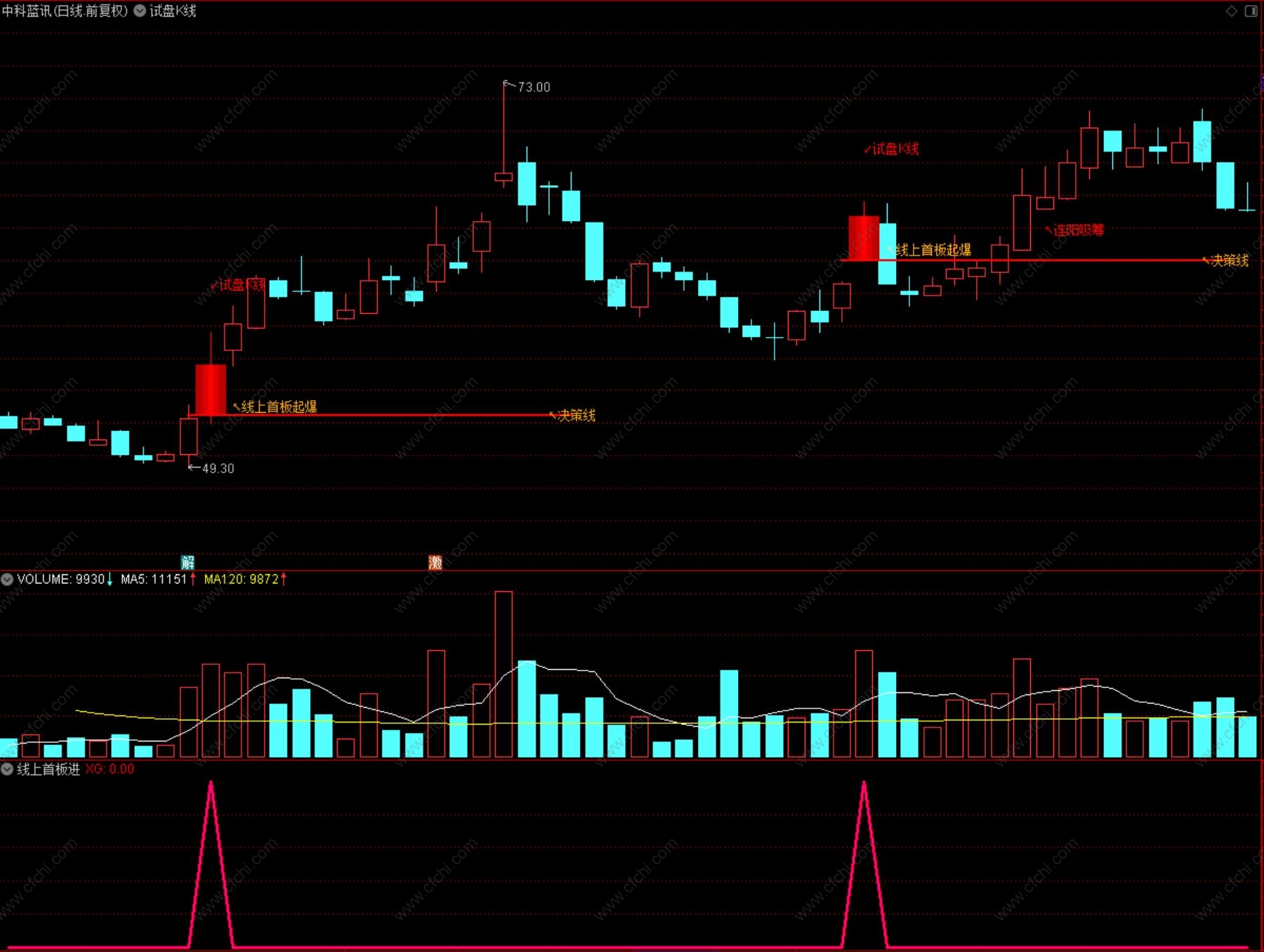 股,如遇洗盘破线止盈止损或暂时离场,如短时间内再次突破决策线,N字上行拉升可再次跟进,具体战