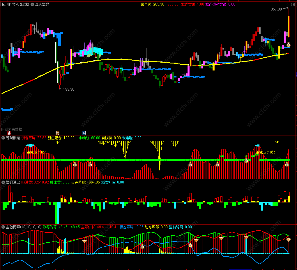 (【通达信】真实筹码+筹码进出+筹码锁定+主散博弈主副图指标,一套高价筹码指标,源码分享)