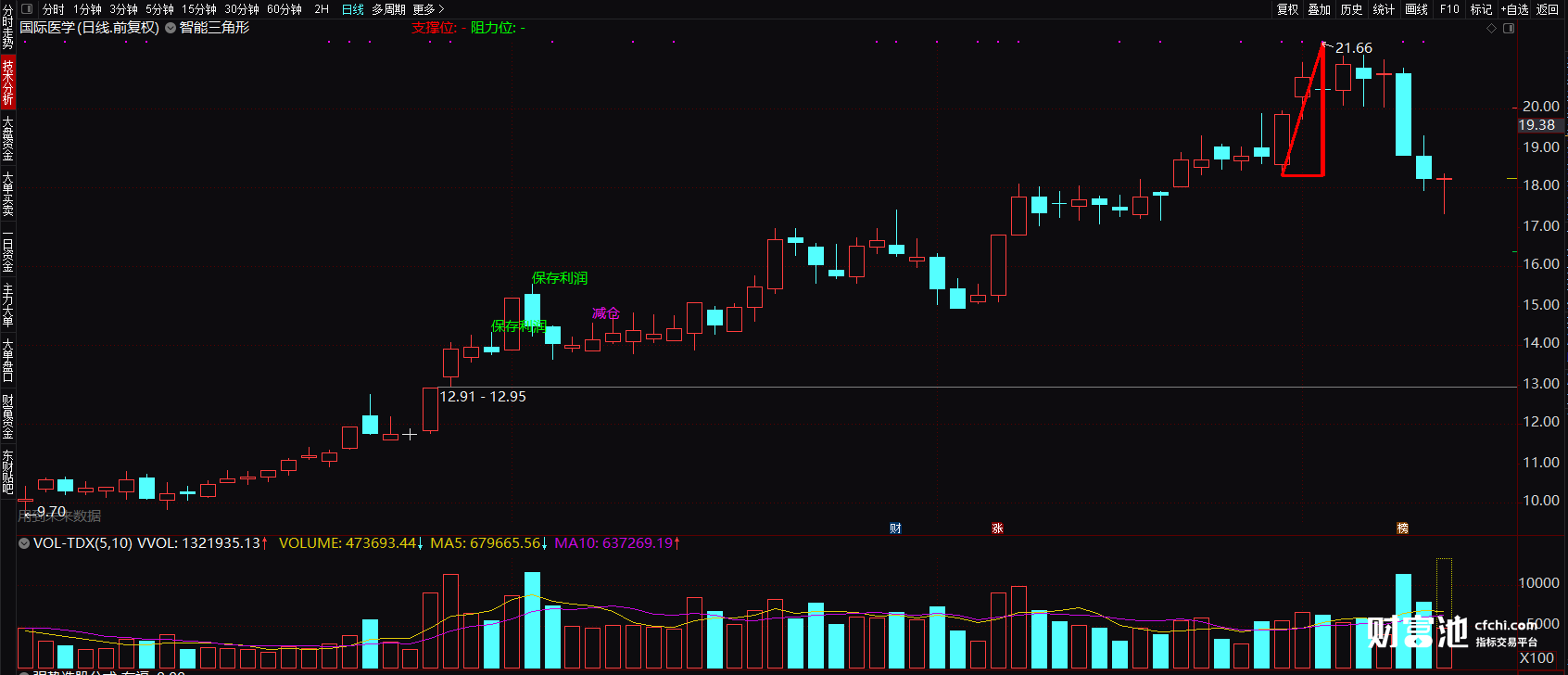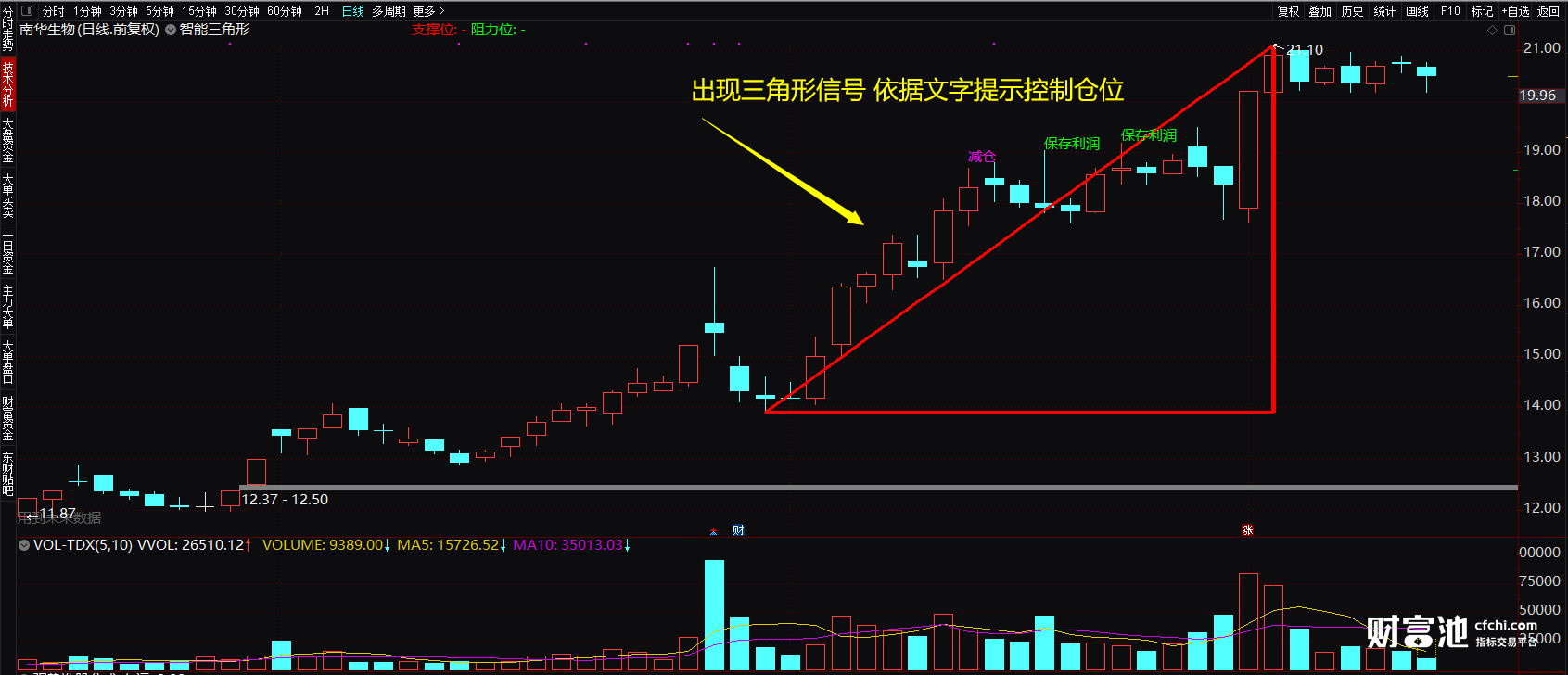 今天分享一个智能辅助线主图根据当前走势智能提示 股性优劣形态好坏买卖点,提示“保存利润”,“三角形”变盘等信号提示一目了然。