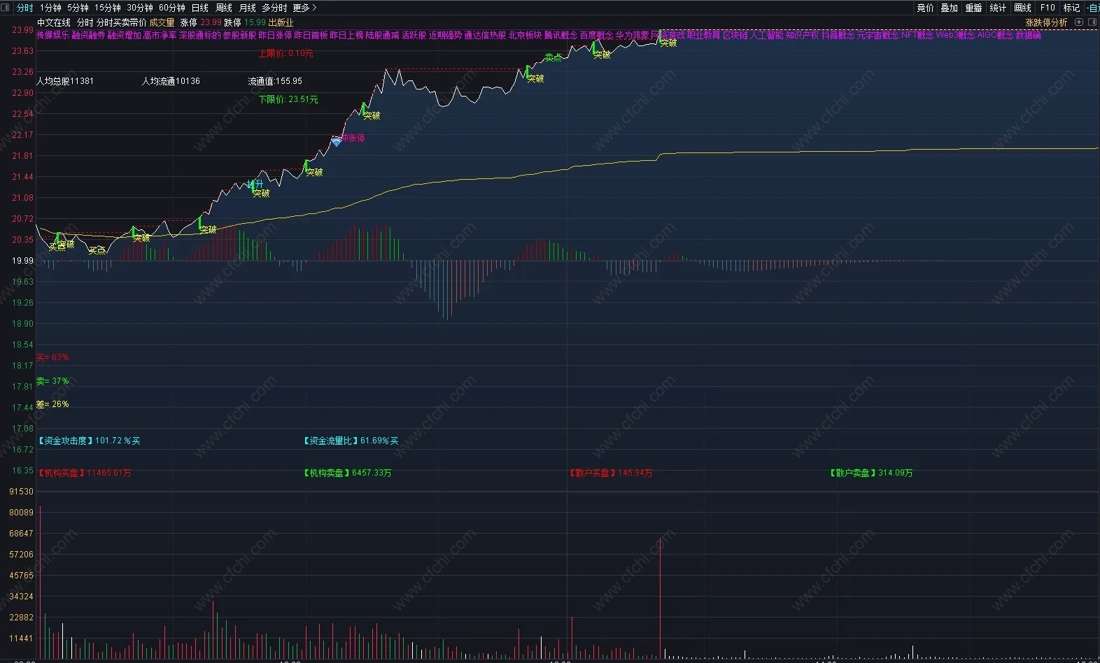 精华版:分时主力吸筹:增加了买入点提示,效果不错。手机电脑都可用。