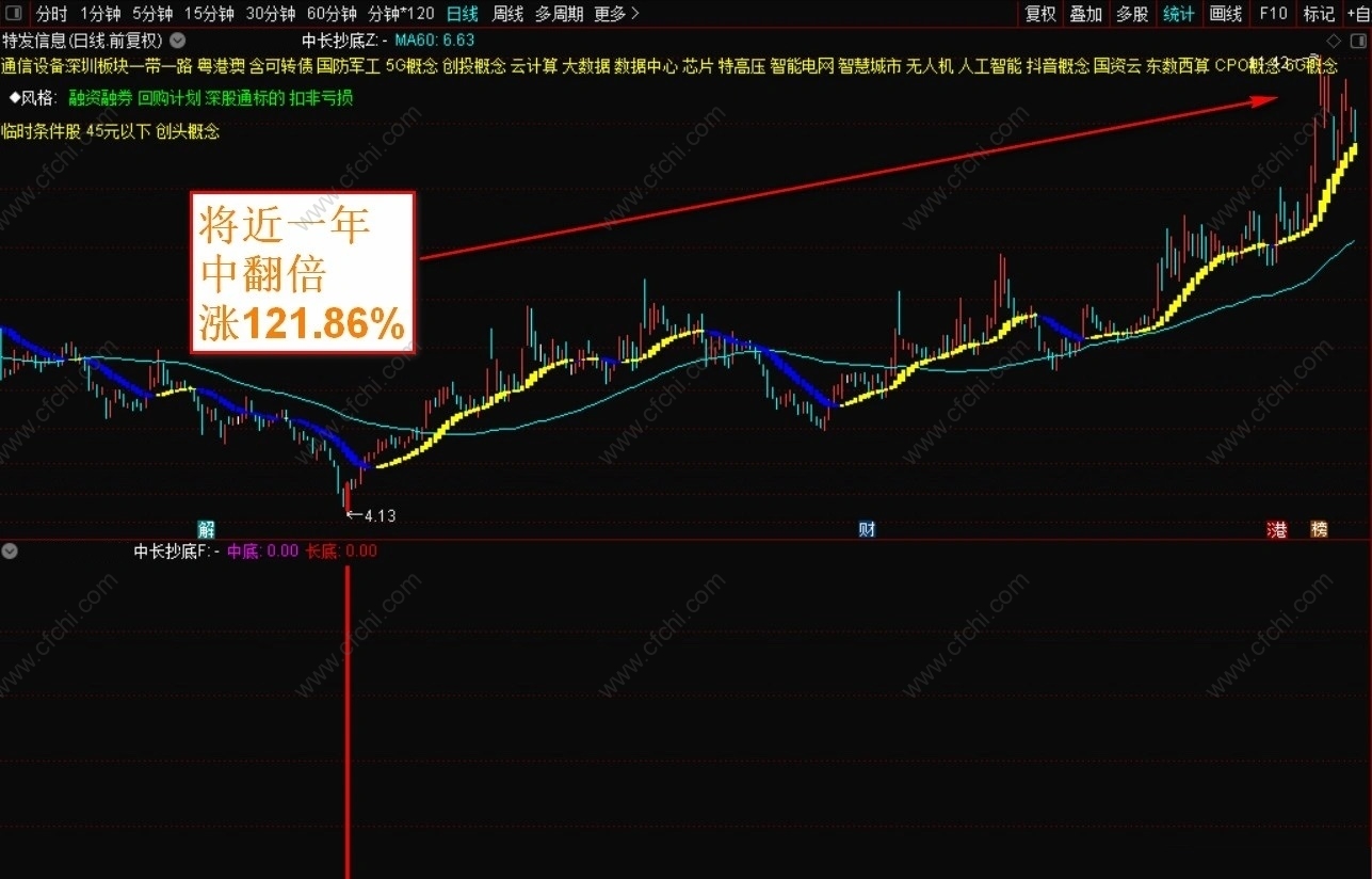 (波段操作赚翻倍的【超级中长抄底】主副图选股指标,适合上班族,胜率不错!源码分享)