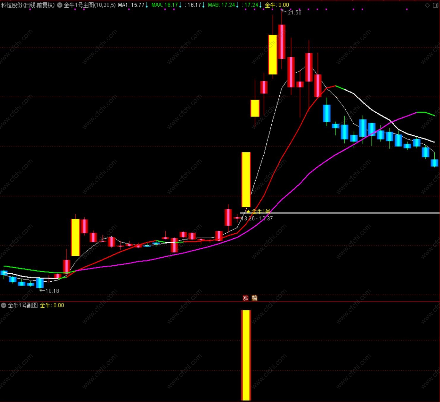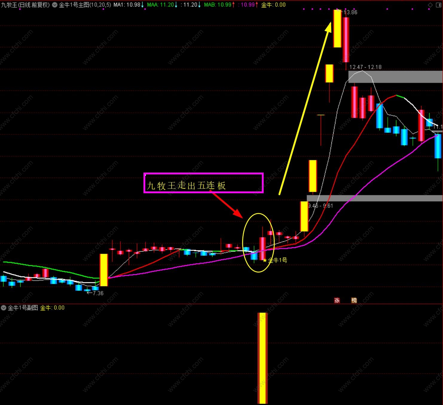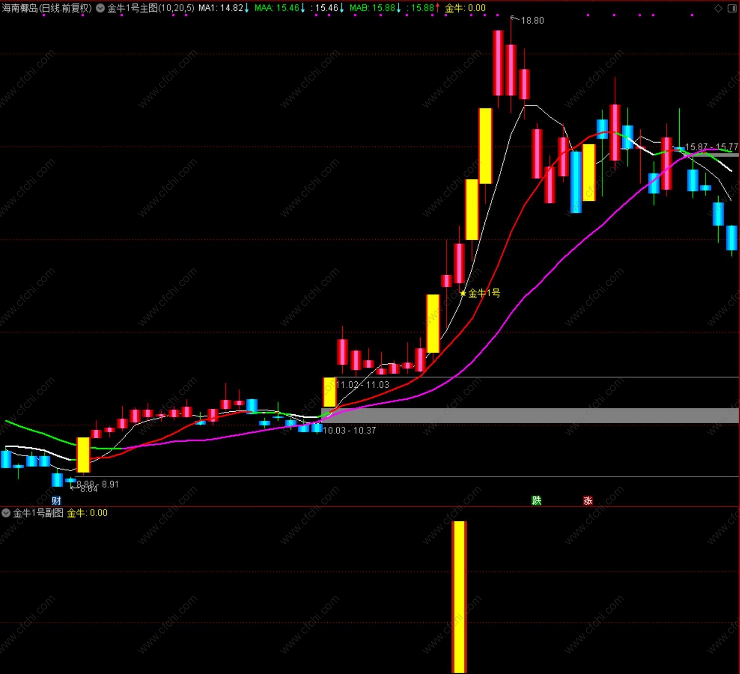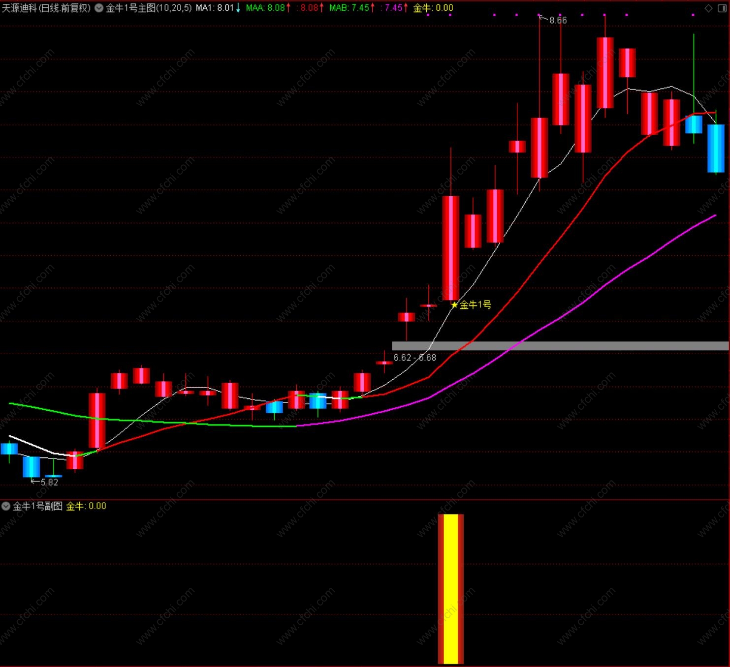 (通达信至尊版【金牛1号】套装公式指标、信号精而少,主副图结合有特效,源码指标、无未来!)