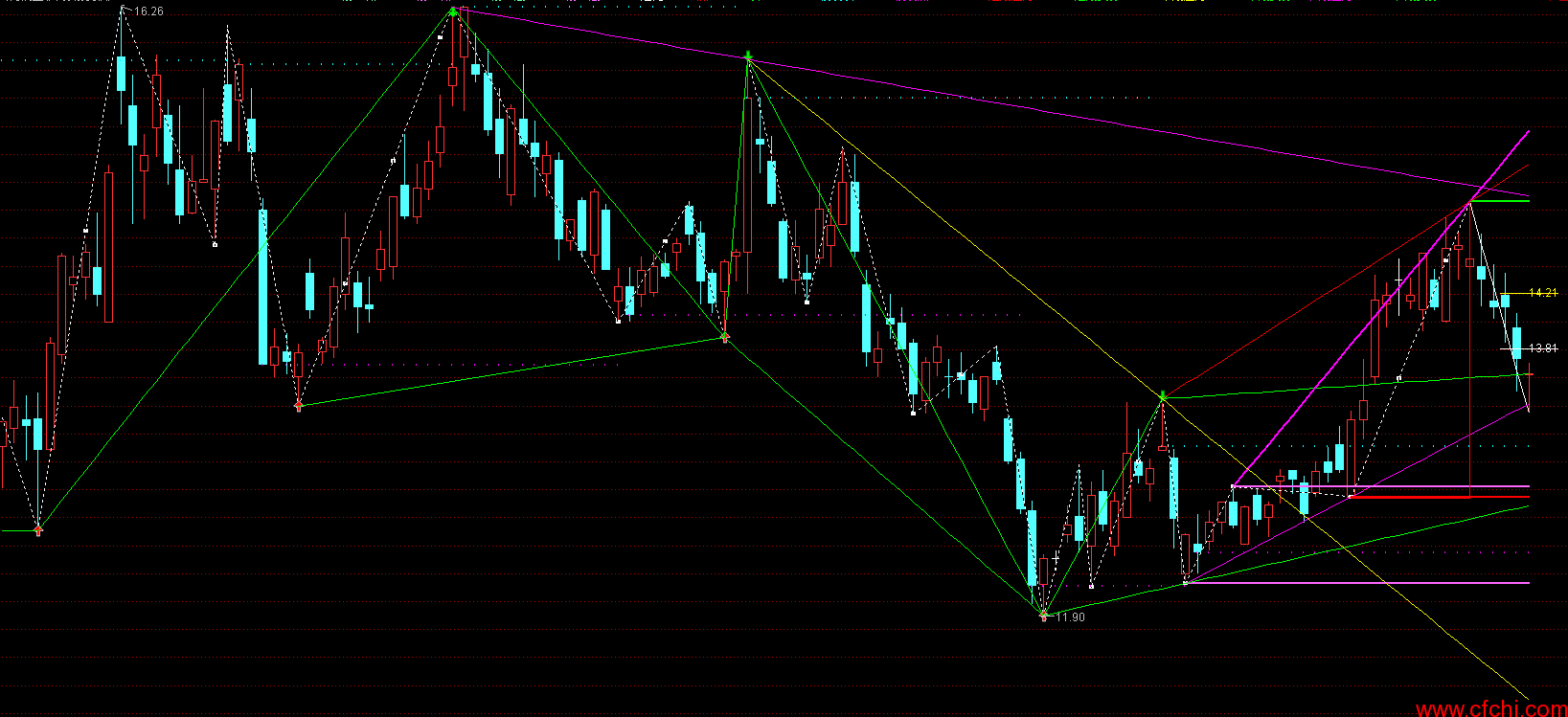 波浪顶:IF(T1309,A309,A309),COLORCYAN,POINTDOT,LINETHICK2;