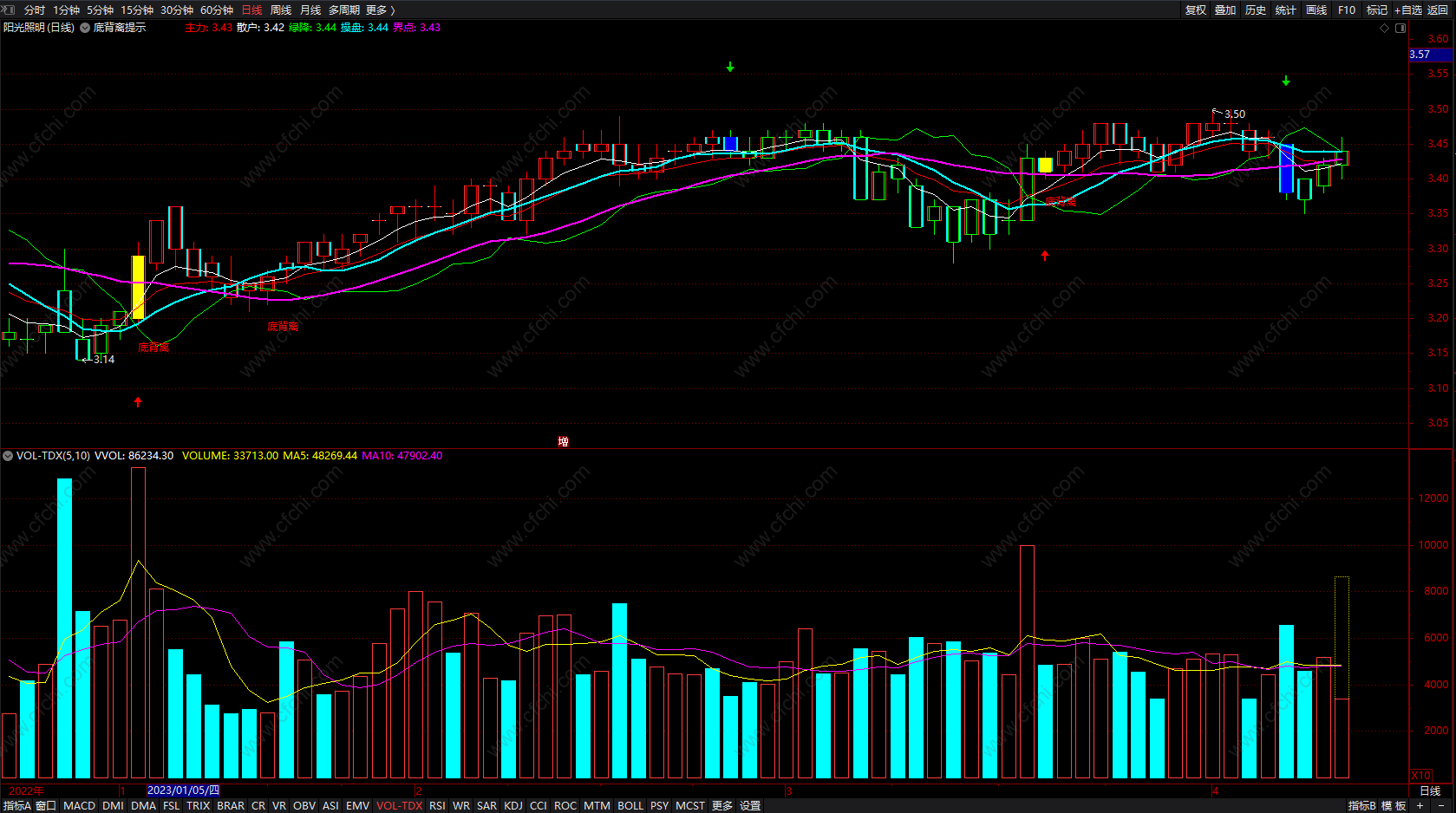 (精准底背离选股 通达信超级波段红绿箭头提示指标公式 源码 主图)