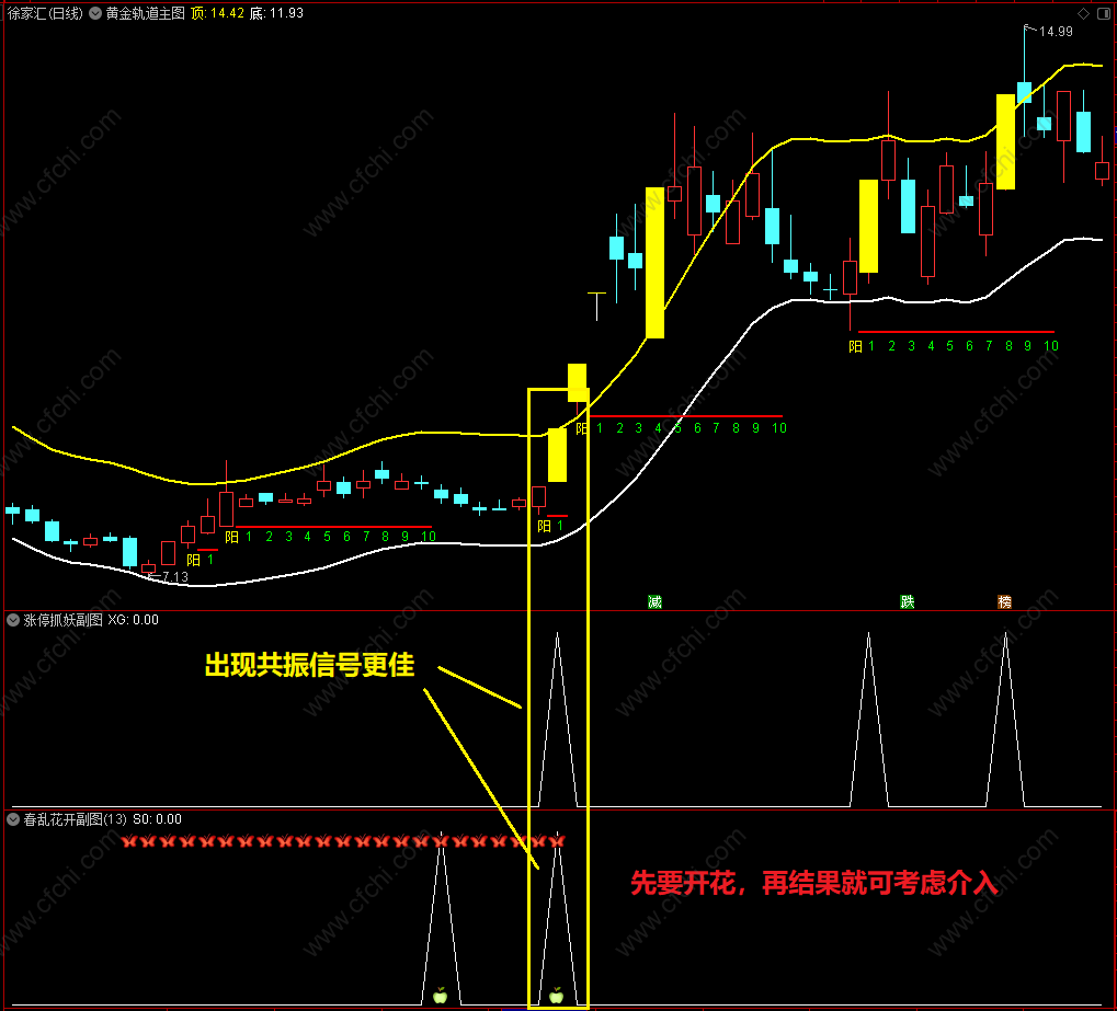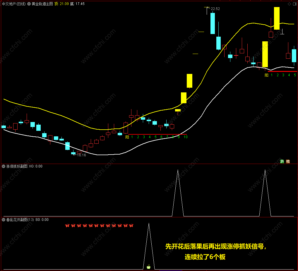 2、总结就是 先要开花,再结果后就可以买入,或者开花后见【涨停抓妖】发信号,可以买入。