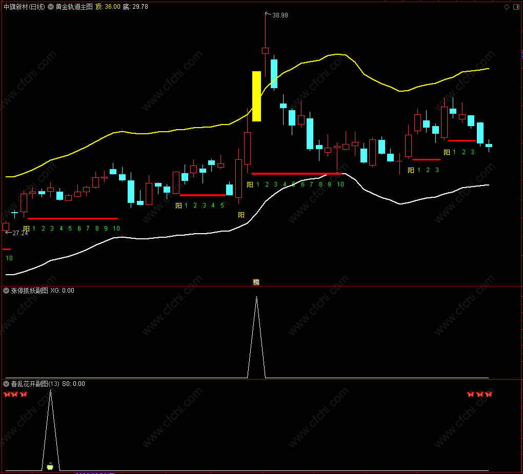 3、本指标属于短线(2-9天)的指标,先开花后结果,首板后落花可以介入。