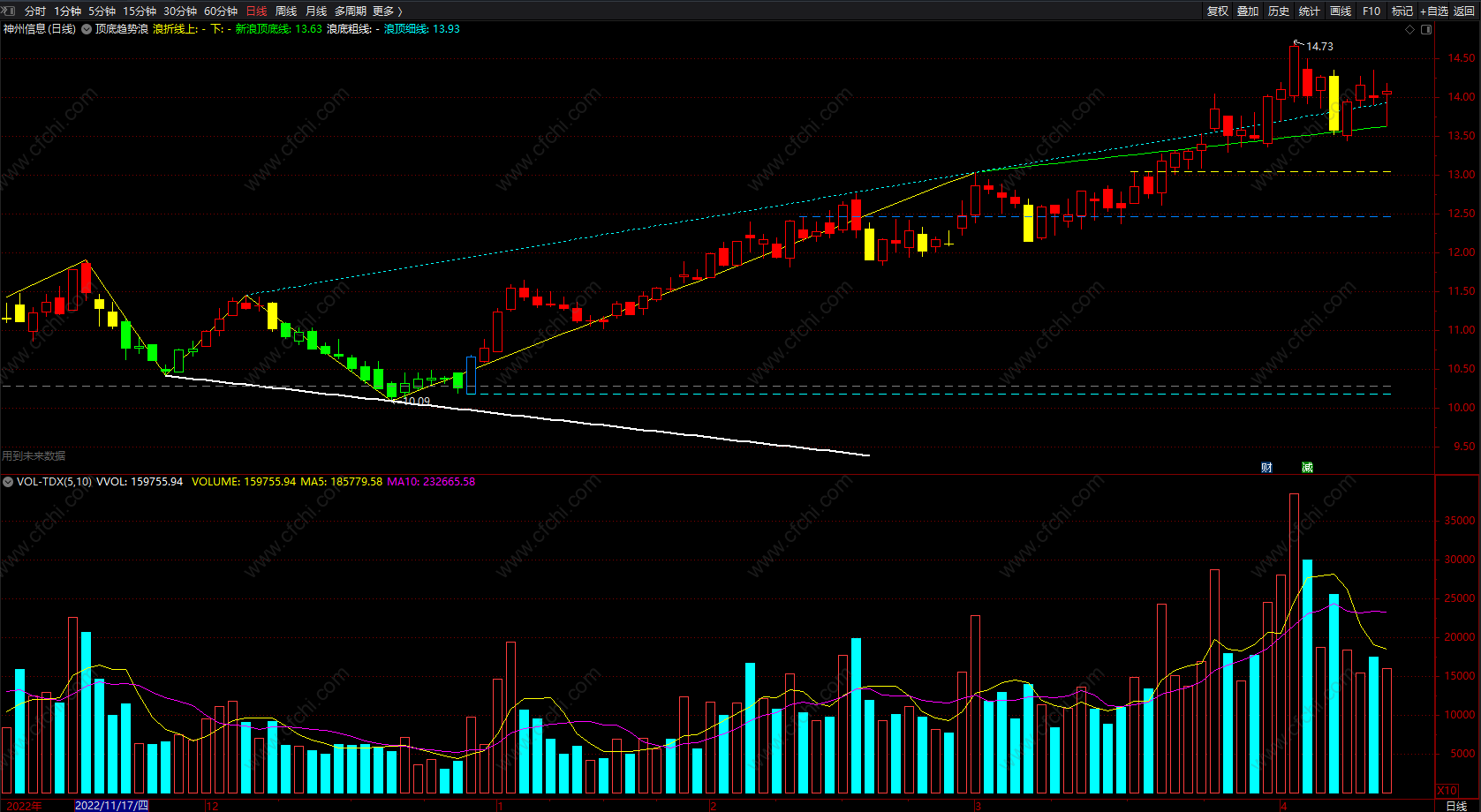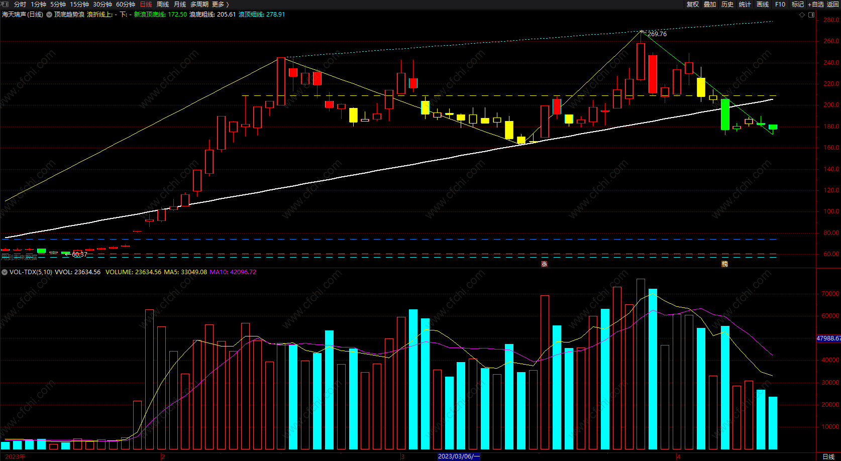 浪折线上:DRAWLINE(LD,L,HD,H,0),COLOR00FFFF,LINETHICK1;