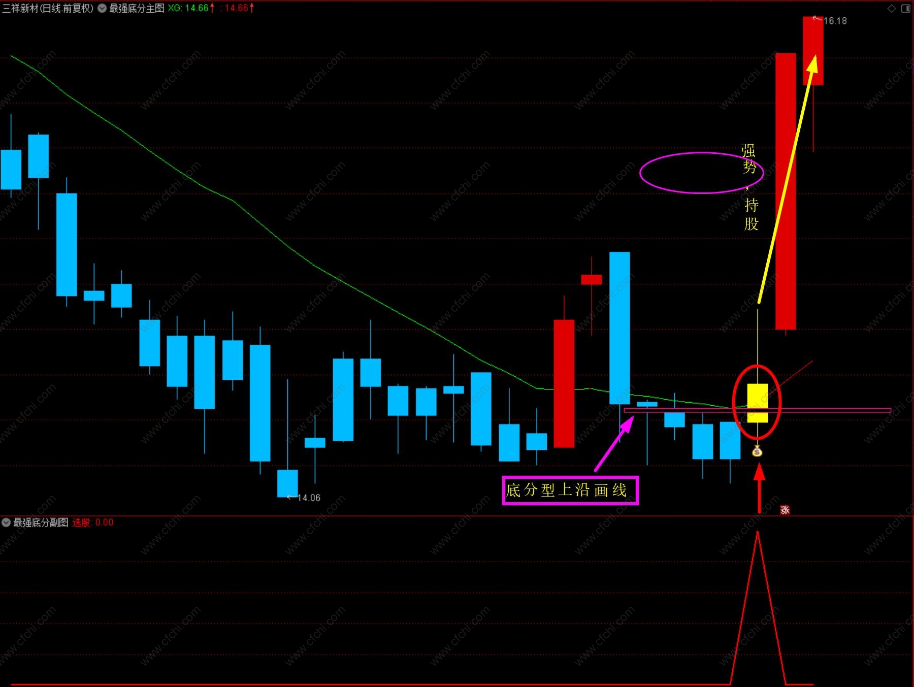 2、激进型玩家,形成“底分型”当日,当股价上破第二日最高价,且站稳5日均价线后介入。